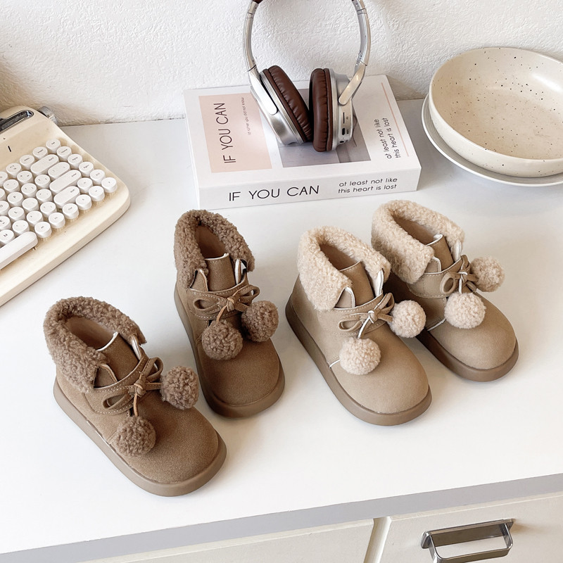 น่ารักสาวรองเท้าผ้าฝ้ายแฟชั่น Hairball ฤดูหนาวเด็กข้อเท้ารองเท้าอเนกประสงค์เด็กแฟชั่น Causal Snow Boot