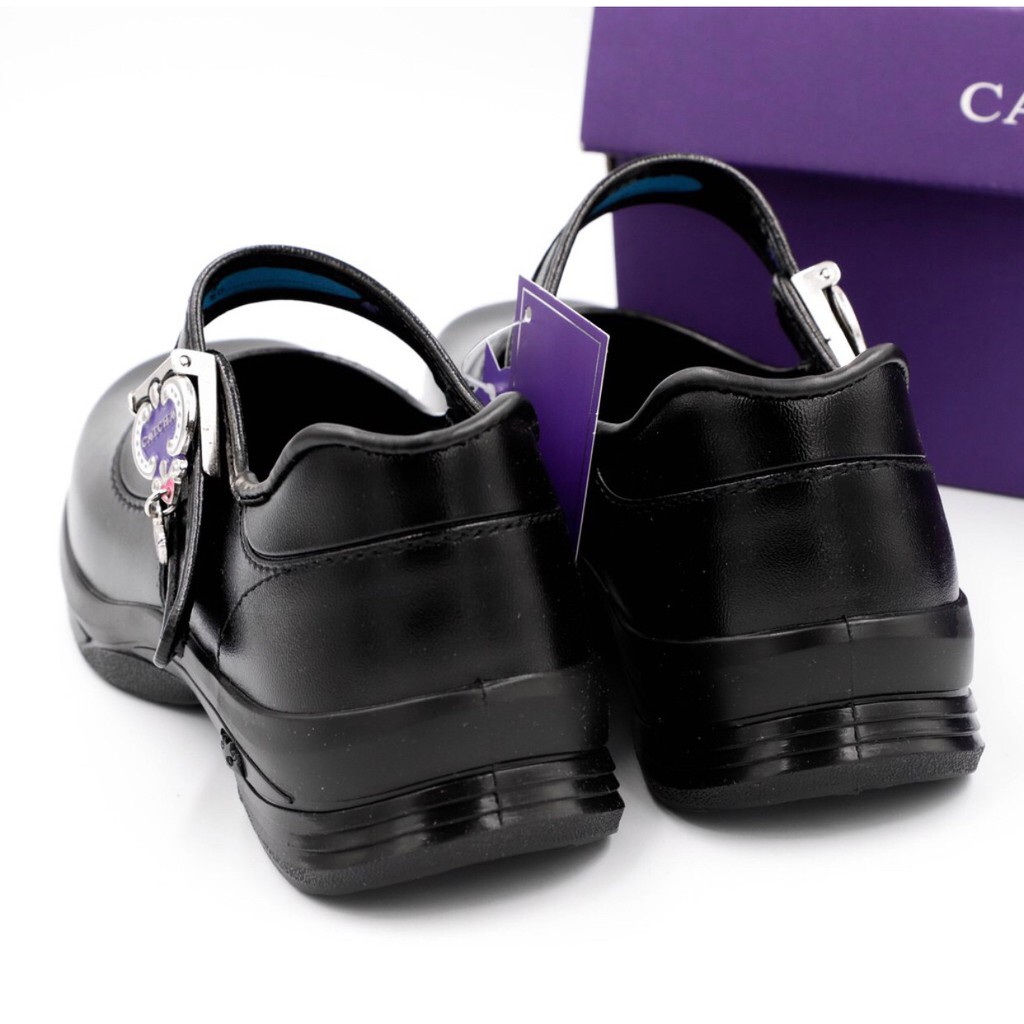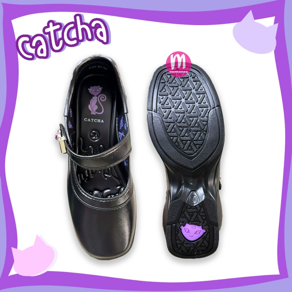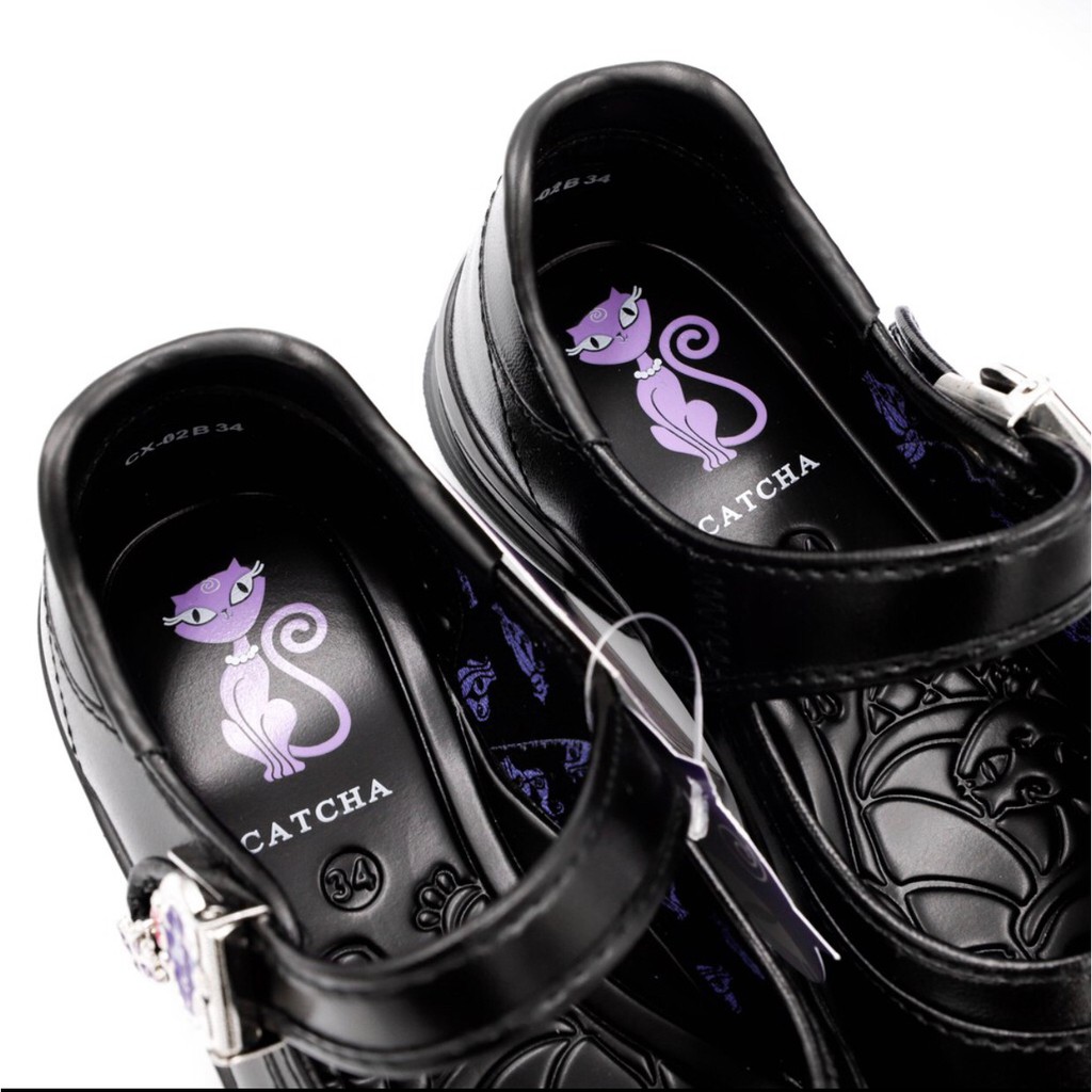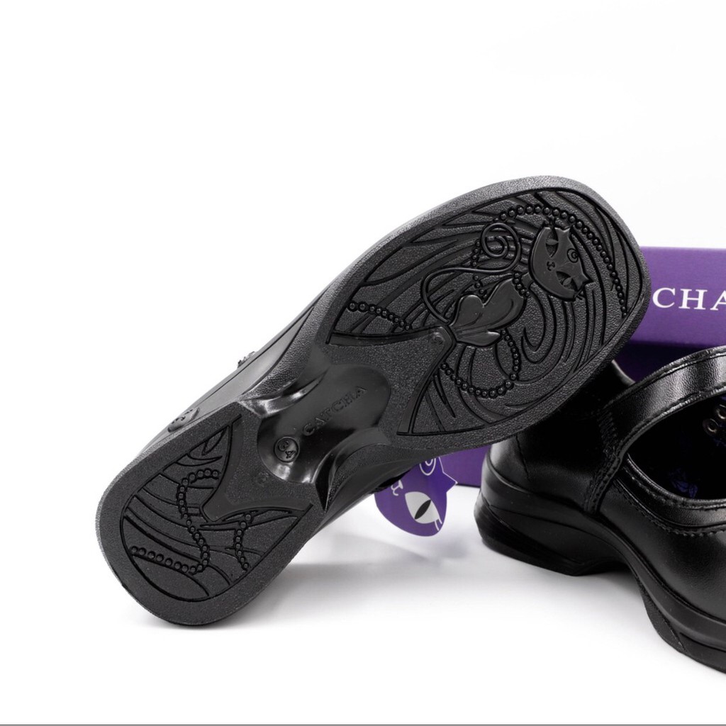 รองเท้านักเรียนหญิง แมรีเจนสไตล์อังกฤษ หนังปั๊มลายคลาสสิก พื้นนุ่ม สีดำ