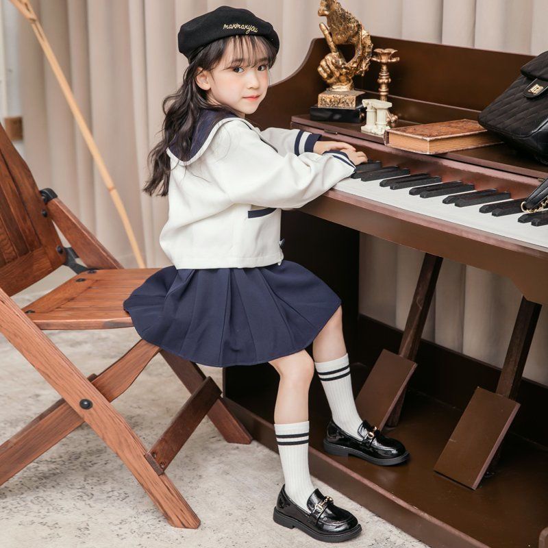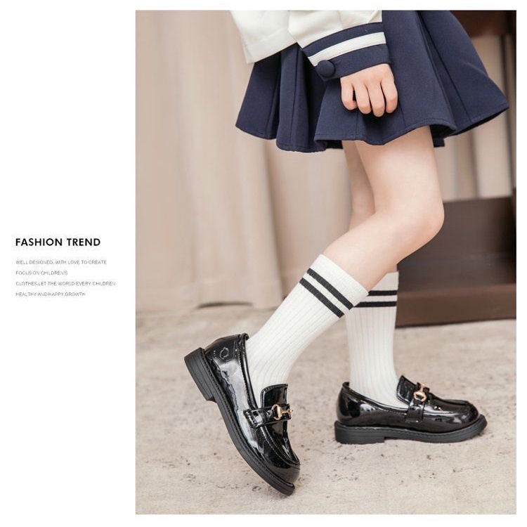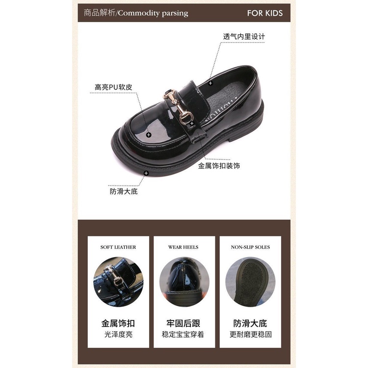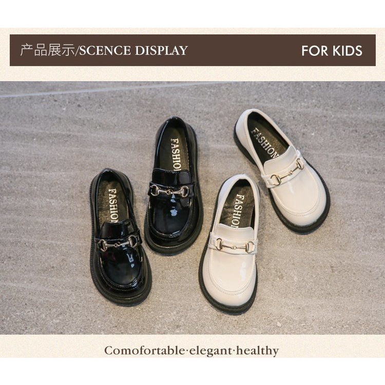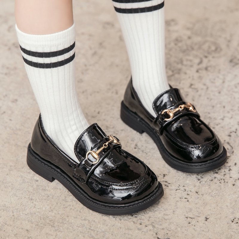 พร้อมส่ง รองเท้าหนัง ขนาดเล็ก สีดํา สไตล์อังกฤษ สําหรับเด็กผู้หญิง 21-36 ไซซ์