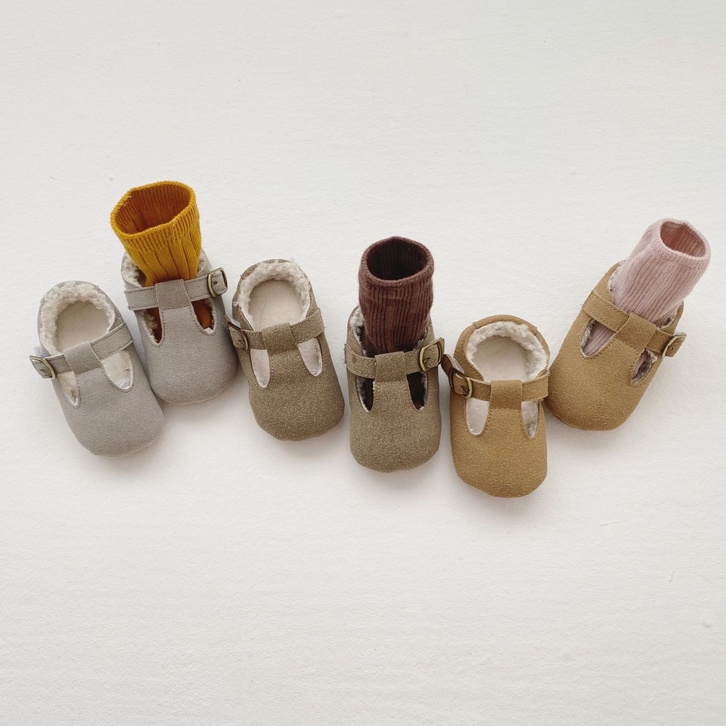รองเท้าผ้าฝ้าย ผ้าฟลีซ พื้นนิ่ม แบบหนา แฟชั่นฤดูหนาว สําหรับเด็กผู้ชาย และเด็กผู้หญิง อายุ 0-3 ปี