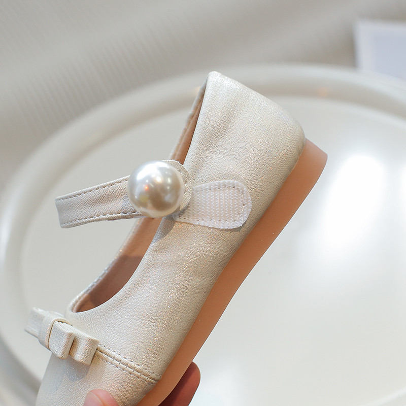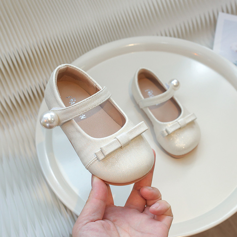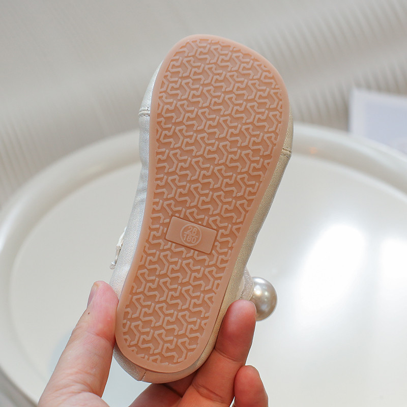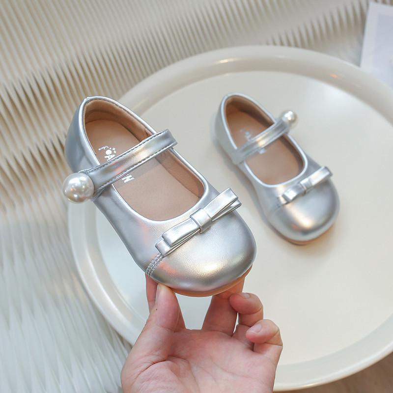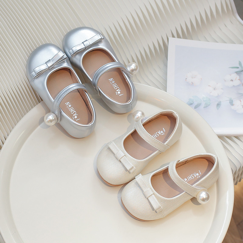 น่ารัก Bowknot Shining หนังรองเท้าแบนสําหรับเด็กทารก Elegant Pearl รอบ toe Soft Sole Anti-slippery รองเท้าเด็ก 2-12 ปี