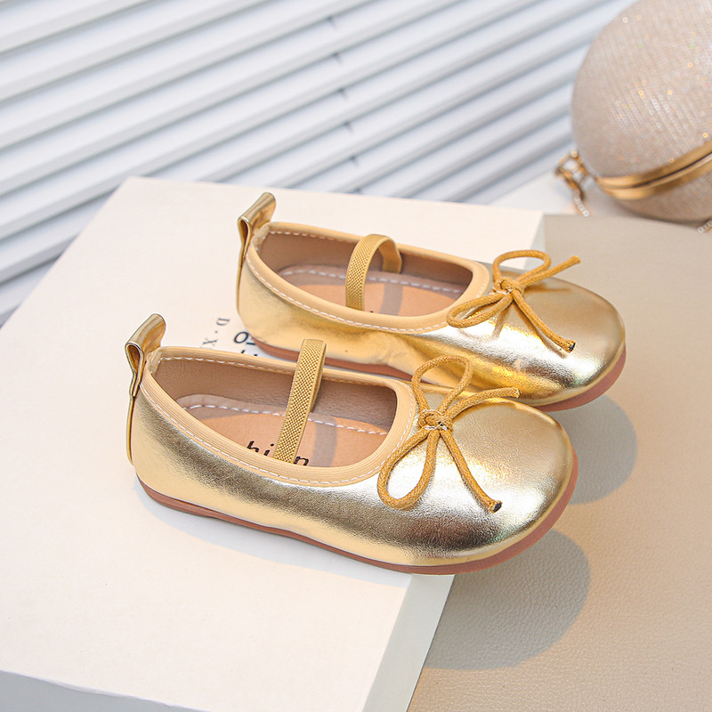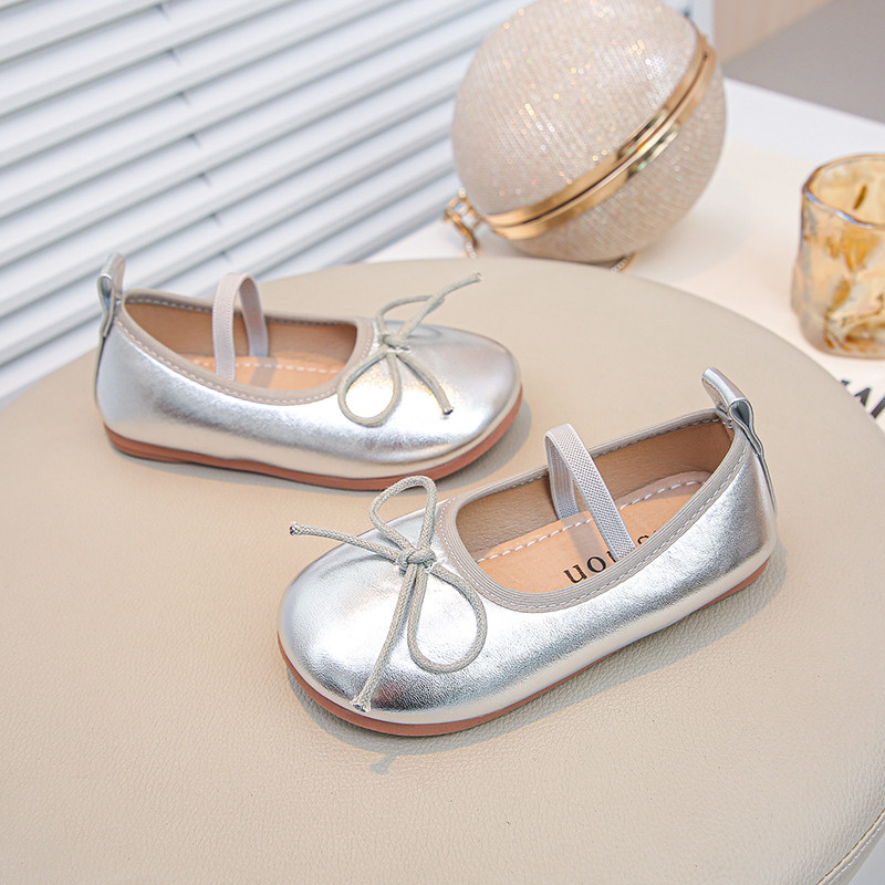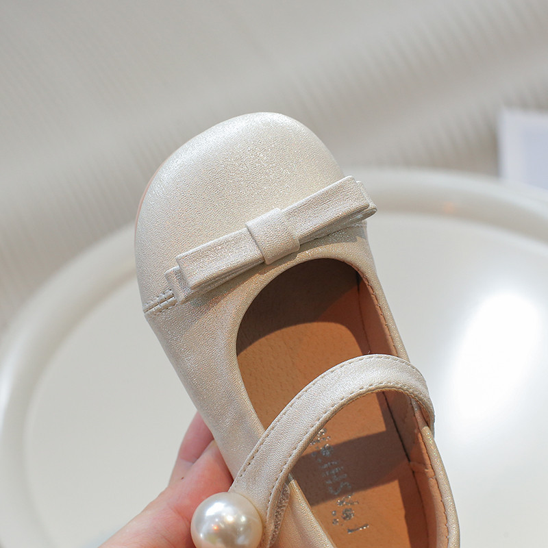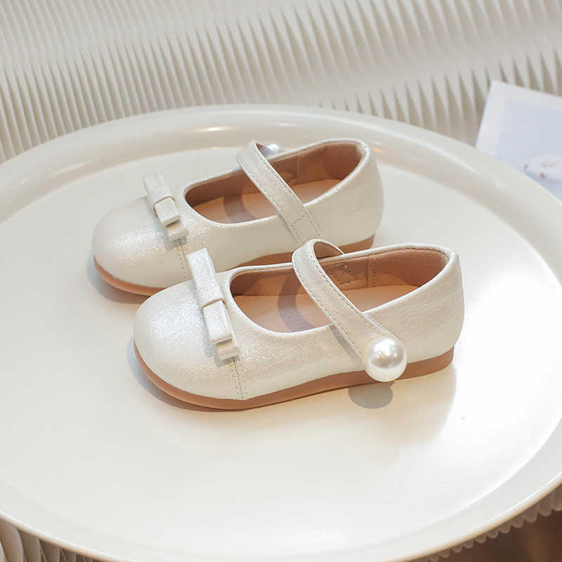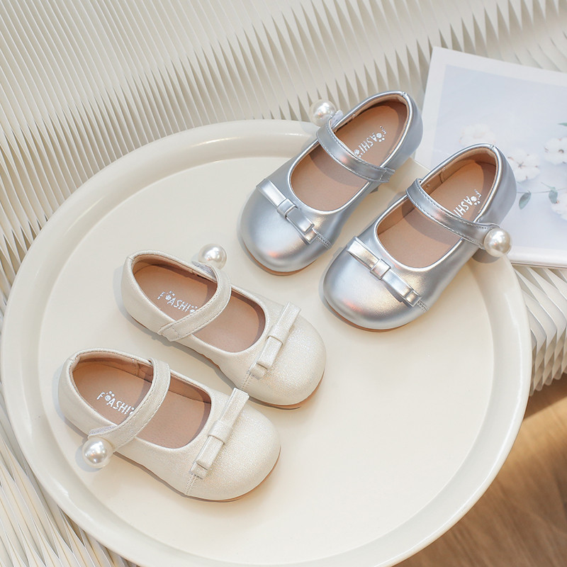 น่ารัก Bowknot Shining หนังรองเท้าแบนสําหรับเด็กทารก Elegant Pearl รอบ toe Soft Sole Anti-slippery รองเท้าเด็ก 2-12 ปี