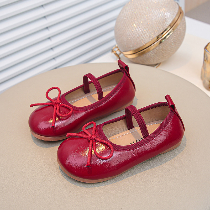 คลาสสิกสาวรองเท้าหนังฤดูใบไม้ผลิฤดูใบไม้ร่วงที่เรียบง่ายกุทัณฑ์เด็กแฟชั่นบัลเล่ต์รองเท้านุ่มไวน์แดงเด็กสาเหตุเจ้าหญิงรอง