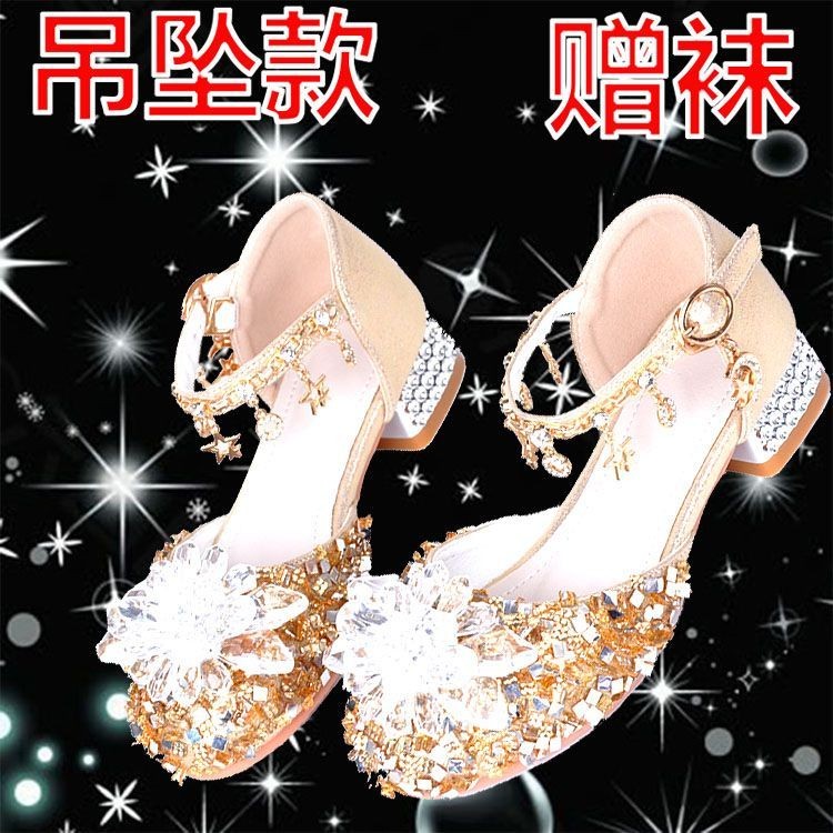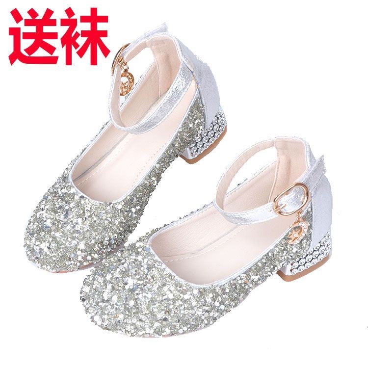 กระพริบเพชรส่องสว่างน่ารักแฟชั่นสาวสดใสเด็กคริสตัลรองเท้าเจ้าหญิงฤดูใบไม้ผลิฤดูใบไม้ร่วงรองเท้าหนังเจ้าหญิงน้ําแข็งรองเท้า