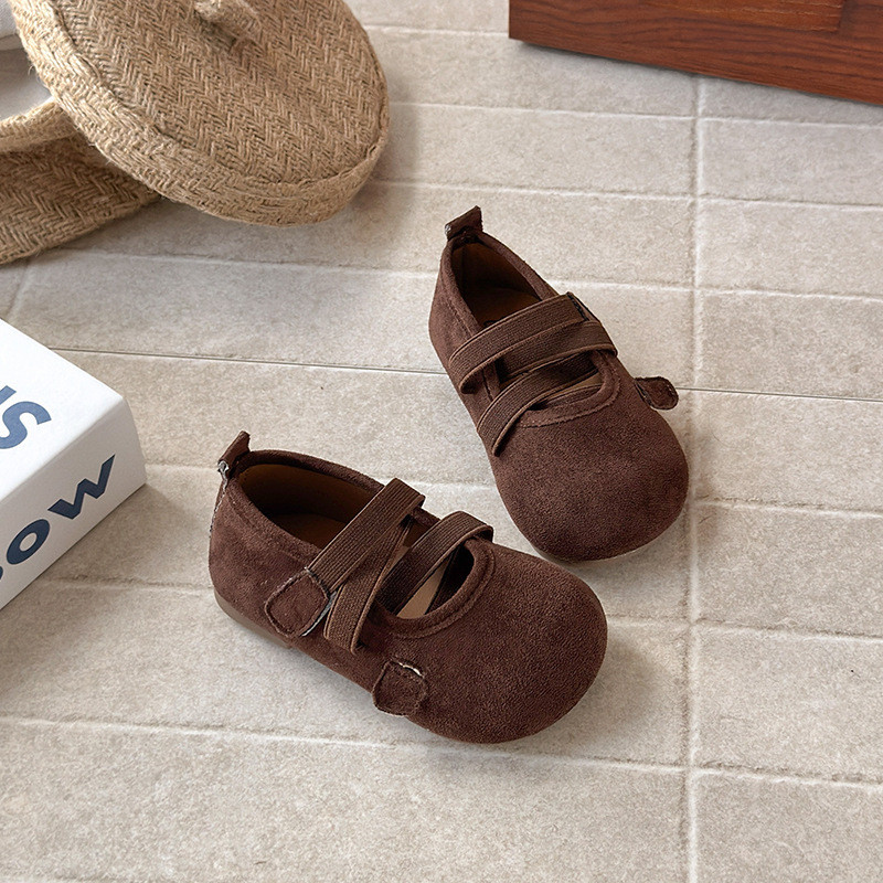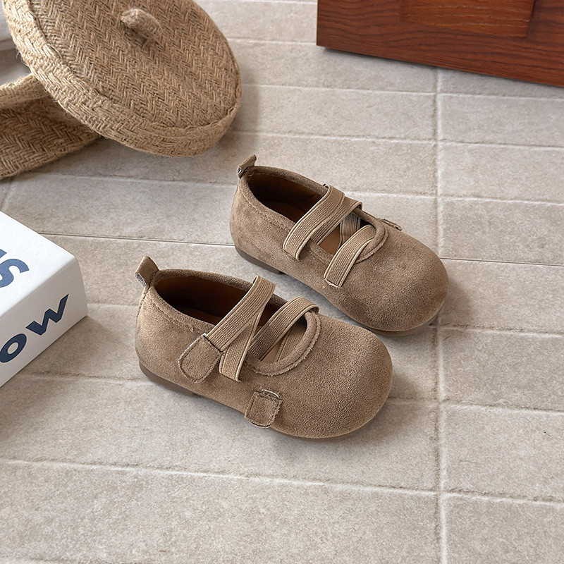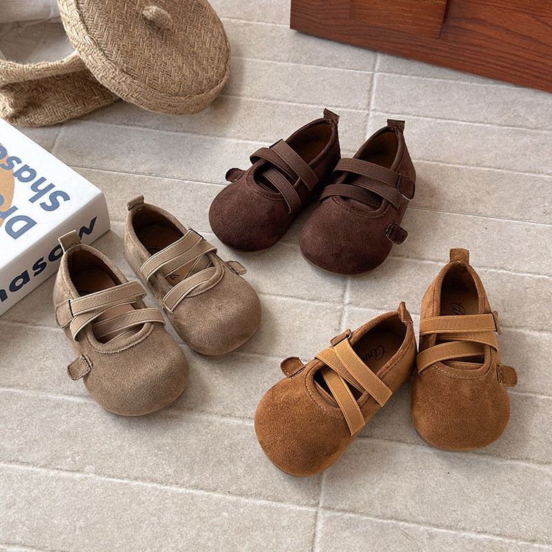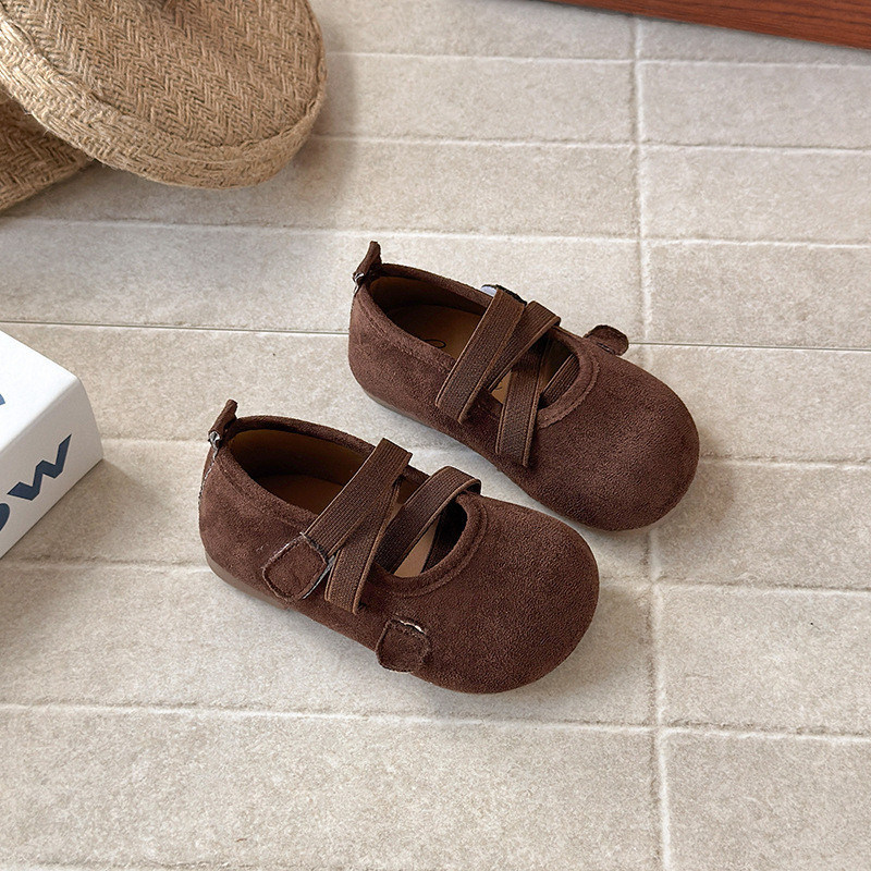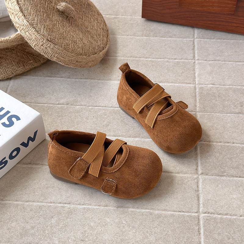 รองเท้าบัลเล่ต์หนังนิ่มน้ำตาลสไตล์เรโทร สวมสบาย ทันสมัยสำหรับหลายฤดูกาล