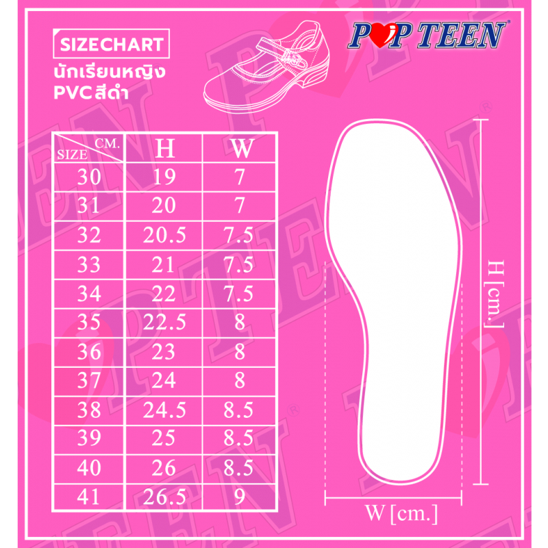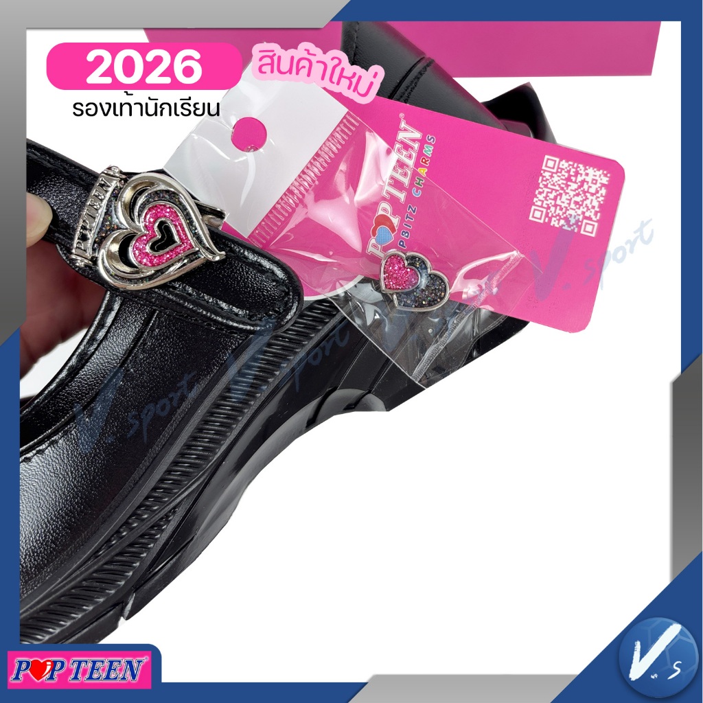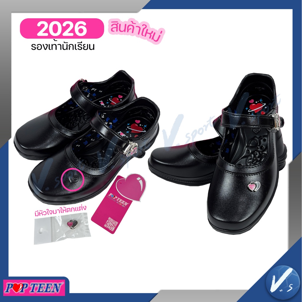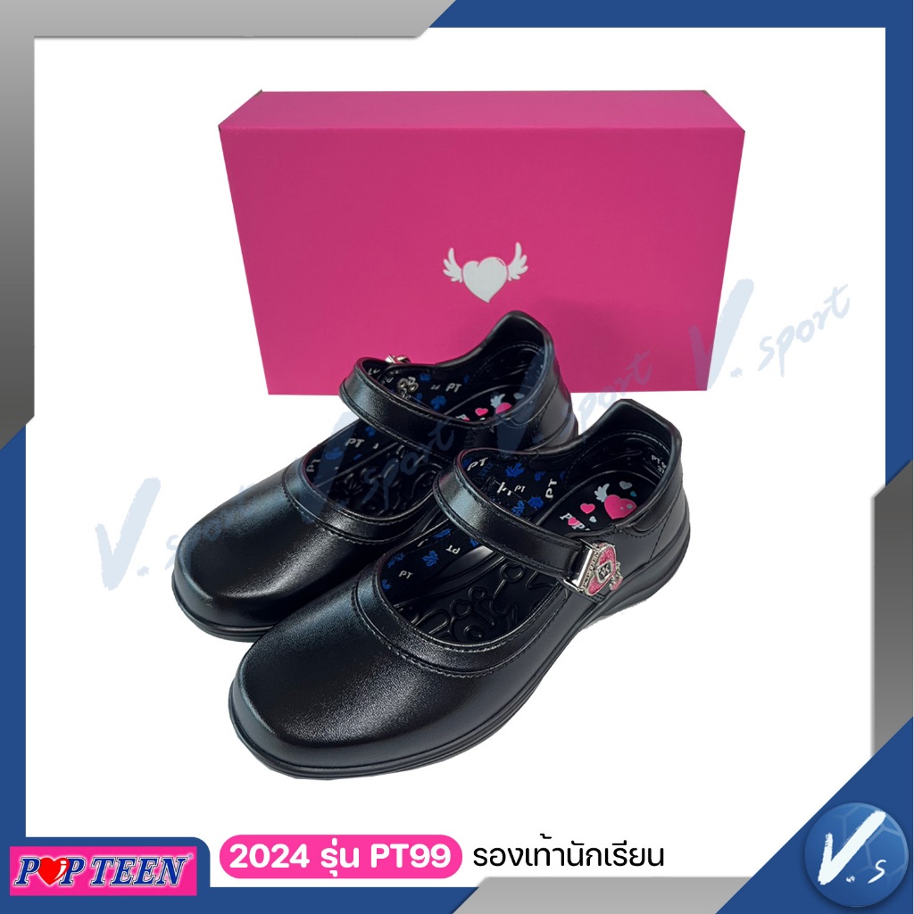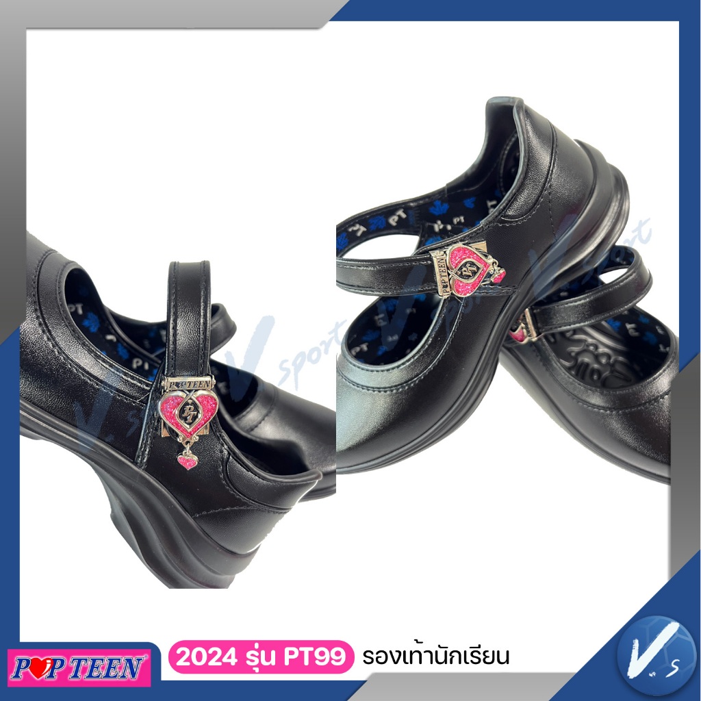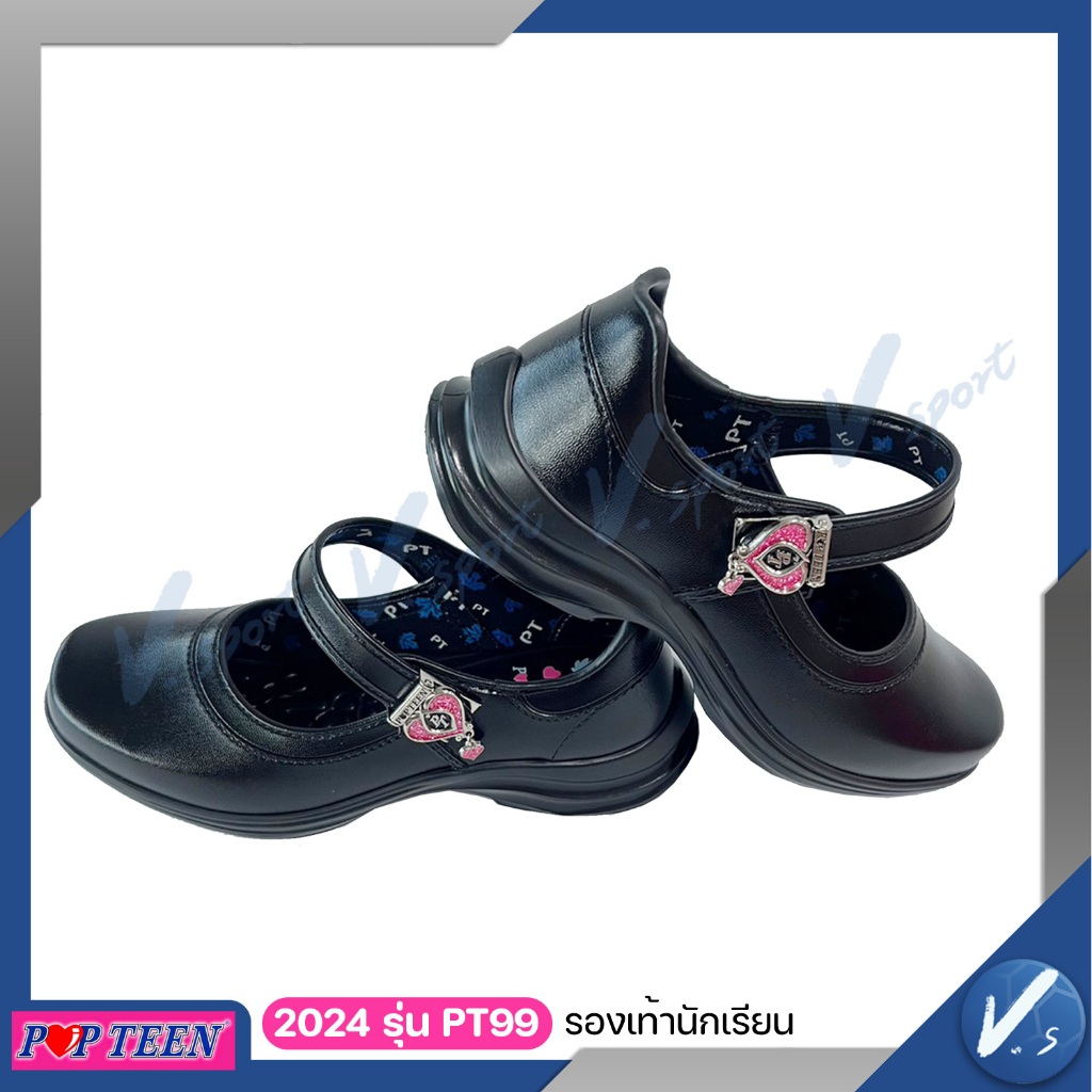 รองเท้านักเรียนหญิง หนังดำ POPTEEN รหัส PT99 ปี 2024 รหัส POP88 ปี 2026