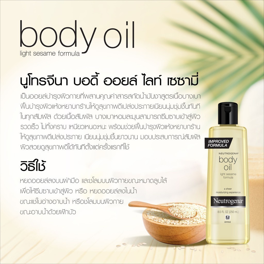 [Gift] นูโทรจีนา ออยบำรุงผิว บอดี้ ออยล์ ไลท์ เซซามี่ 250 มล. Neutrogena Body Oil Light Sesame 250 ml.