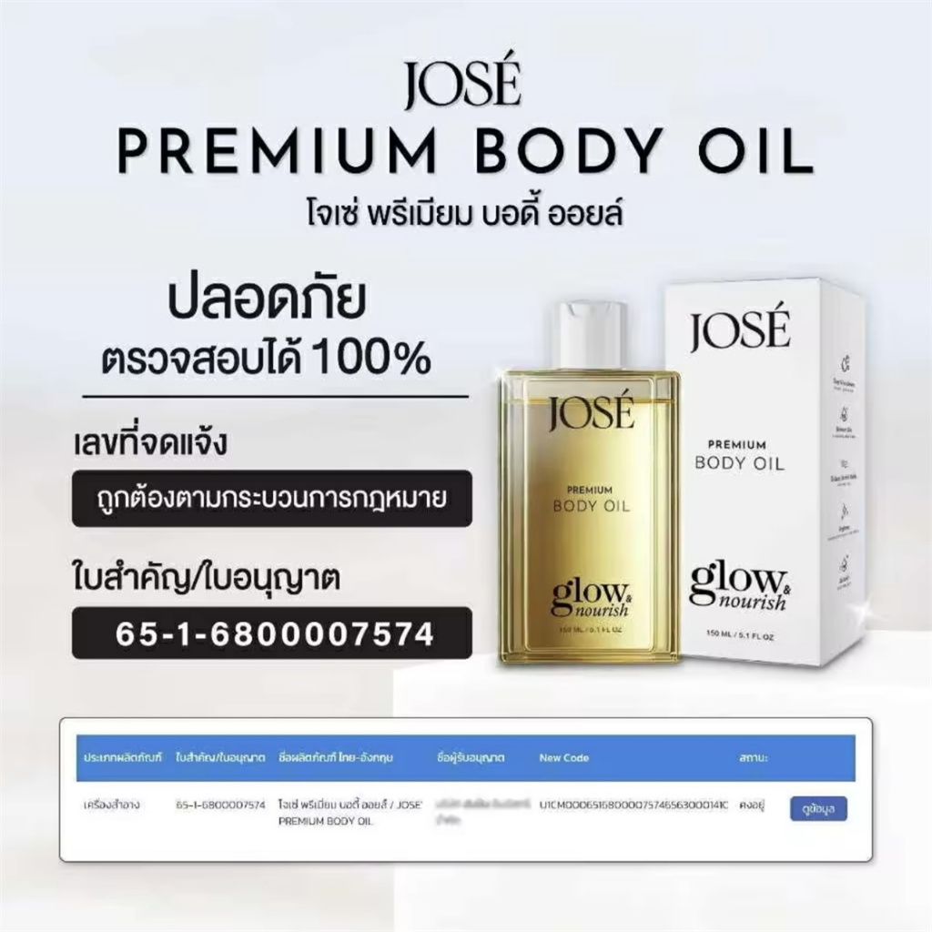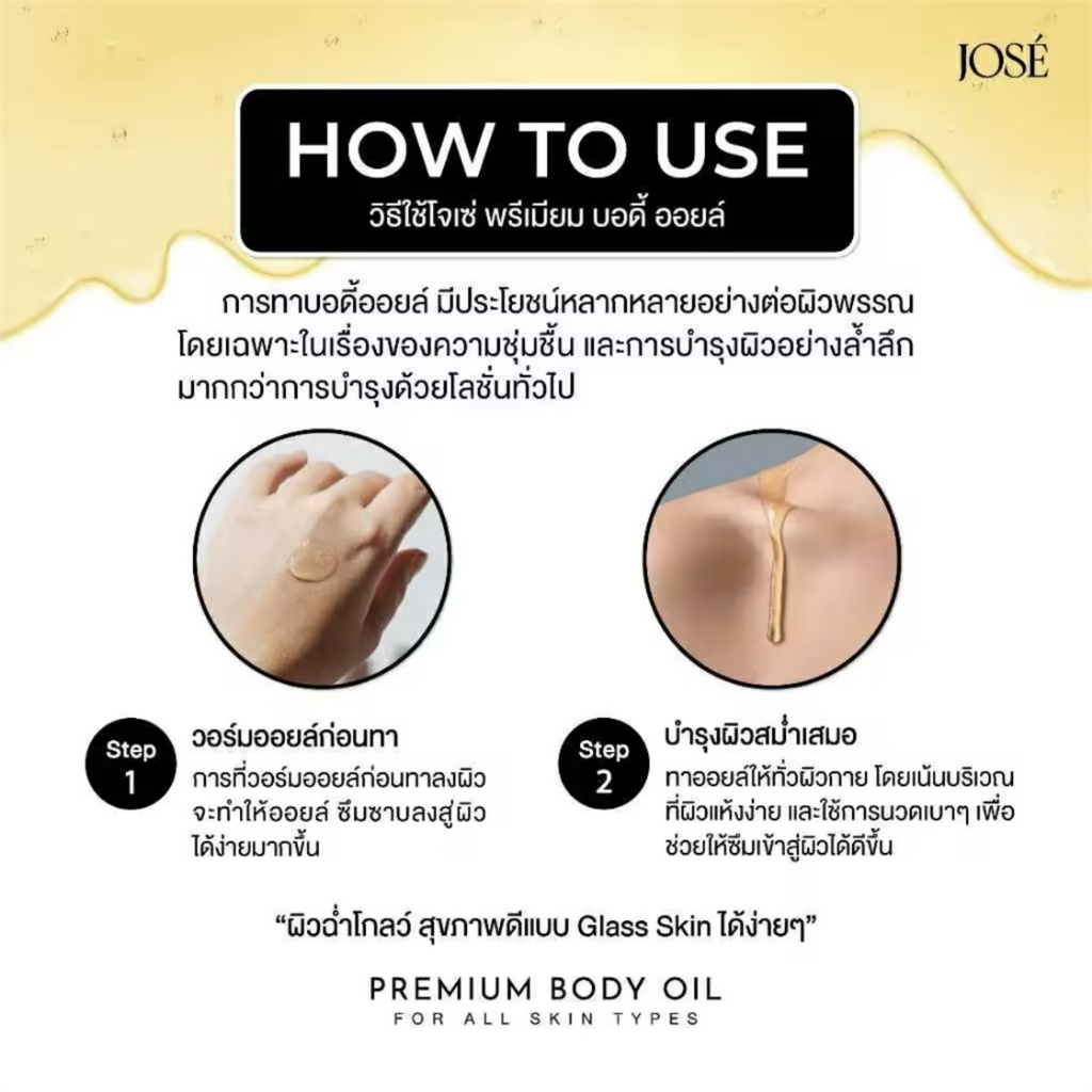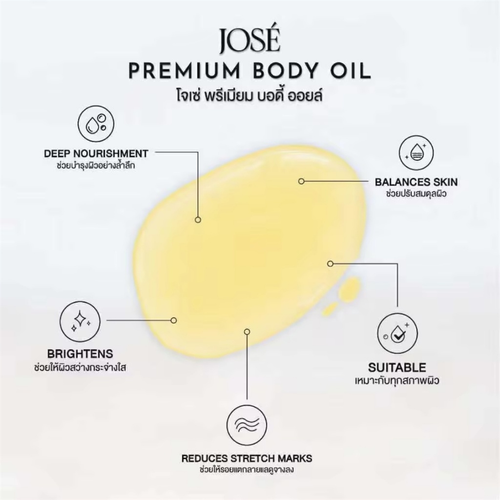 [แพคเกตใหม่] Jose Premium body oil โจเซ่ พรีเมียม บอดี้ ออยล์ ผิวฉ่ำวาว ไม่เป็นขุย ผิวใส ชุ่มชื้น กักเก็บน้ำ