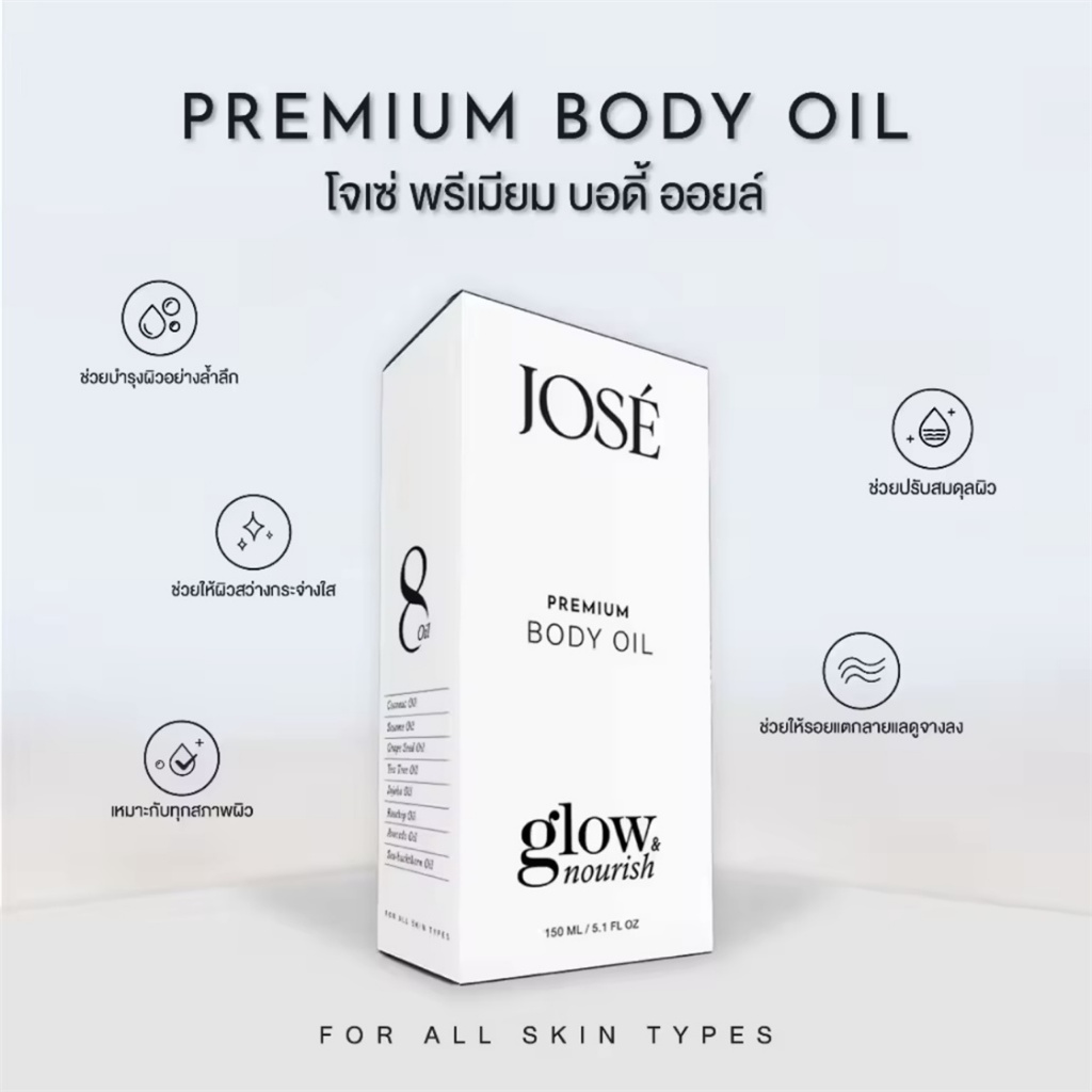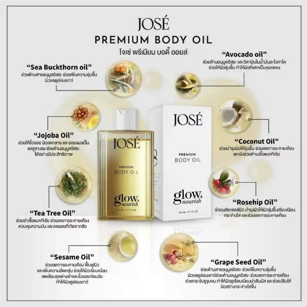 [บริษัทโดยตรง] โจเซ่ พรีเมียม บอดี้ออยล์ 150ml ผิวสุดเข้มข้น ให้ความชุ่มชื้นล้ำลึก ฟื้นฟูผิวเรียบเนียน ผลลัพธ์ที่รวดเร็ว