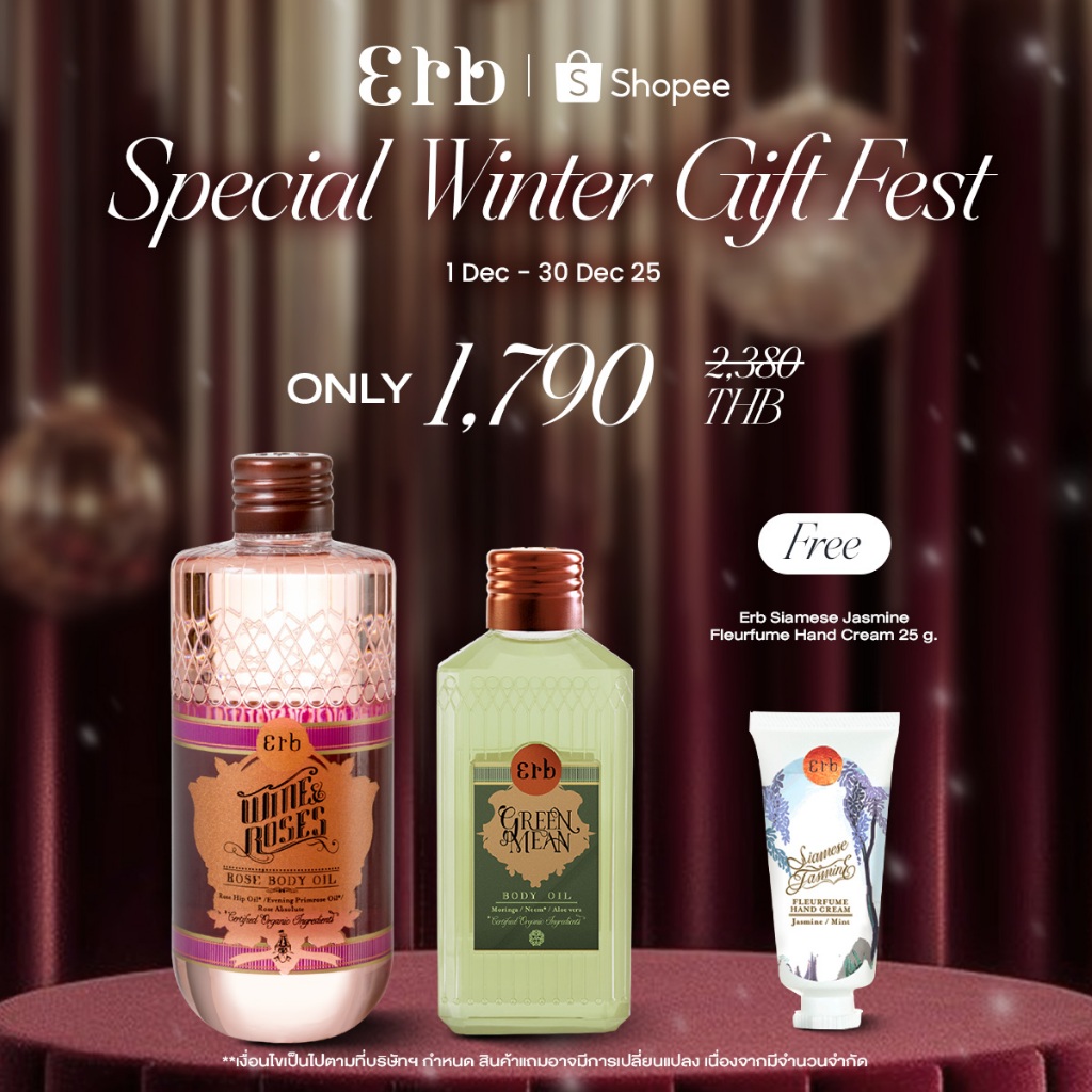 [Exclusive 1-31 DEC] Wine & Roses Body Oil + Erb Green Mean BodyOil 100 ml. free Oriental Hand Cream 25g.บอดี้ออยล์