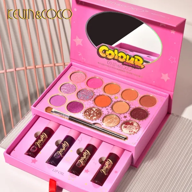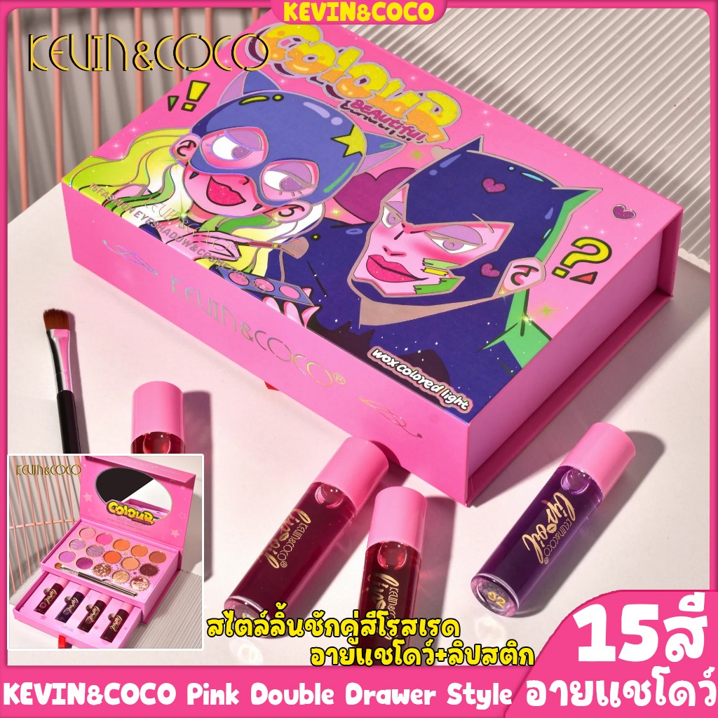 ?“FDA”ใบรับรอง?KEVIN&COCO ของแท้ อายแชโดว์ 15สี + ลิปสติก Pink Double Drawer Style พาเลทแต่งตา มีประสิทธิภาพสูง เนื้อไหม. กันน้ํา ติดทนนาน พาเลทตา pallete eyeshadow #98-3 อายชาโดว์ อายเเชโดว์