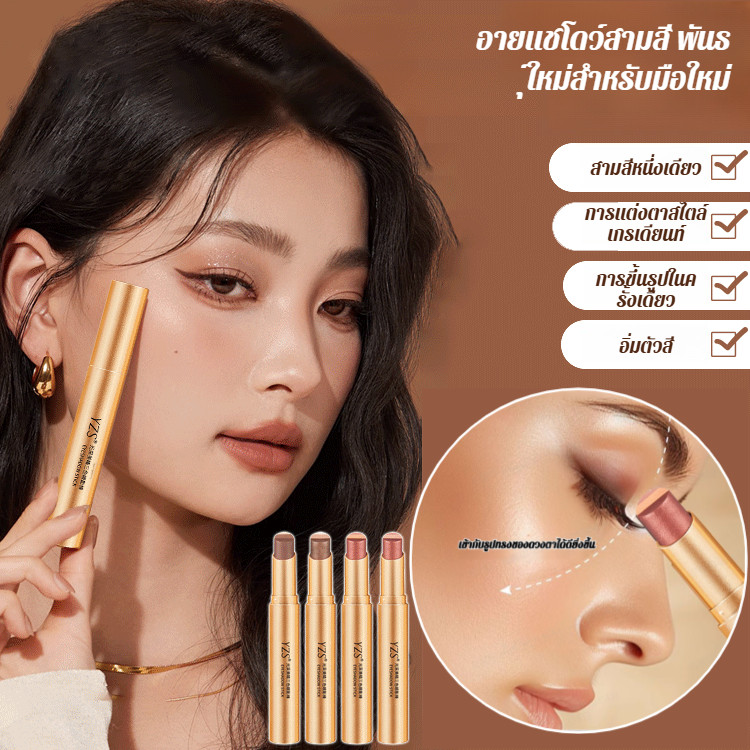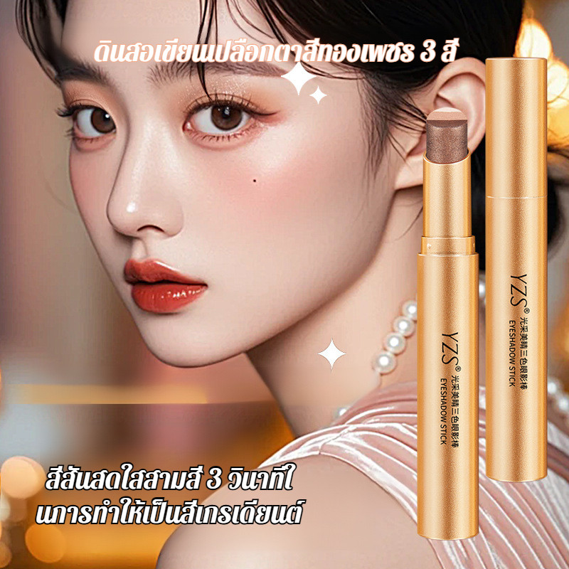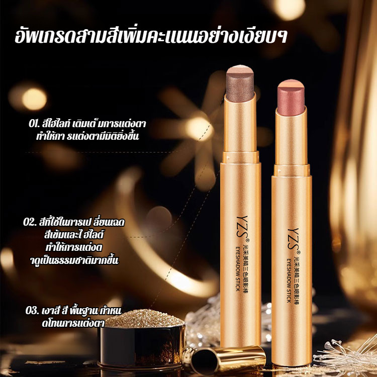 ?1แถม1?อายแชโดว์แบบแฮนด์เมดสําหรับคนขี้เกียจ ชุดอายแชโดว์เพชรแสงไล่ระดับสีสามสี 3 in 1อายแชโดว์แบบแท่งไล่เฉดสามสี Eyeshadow Stick