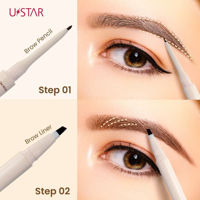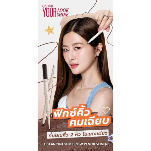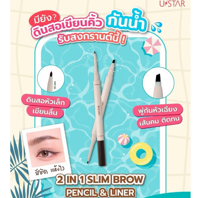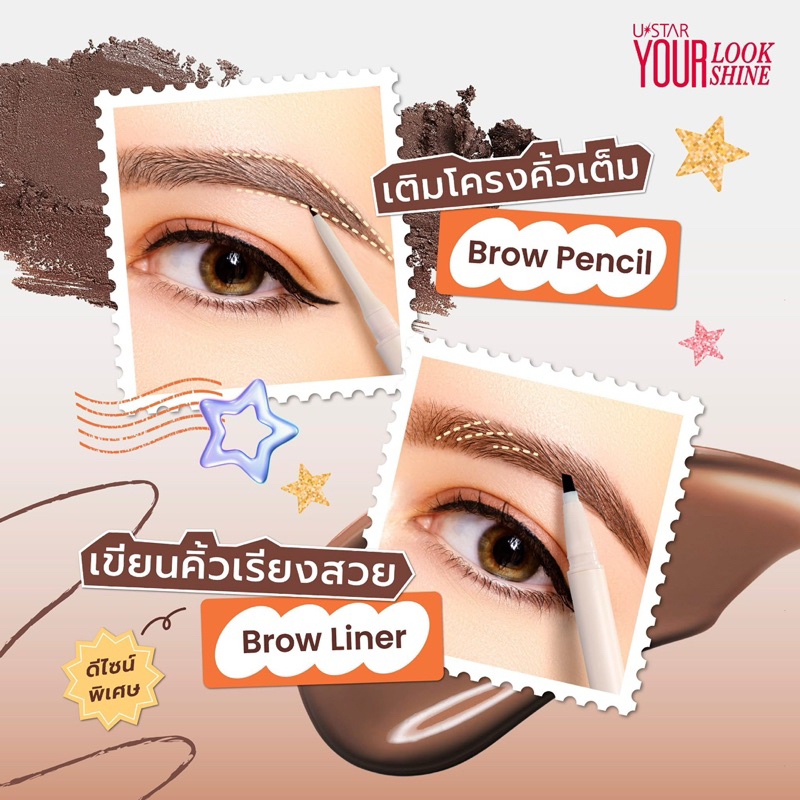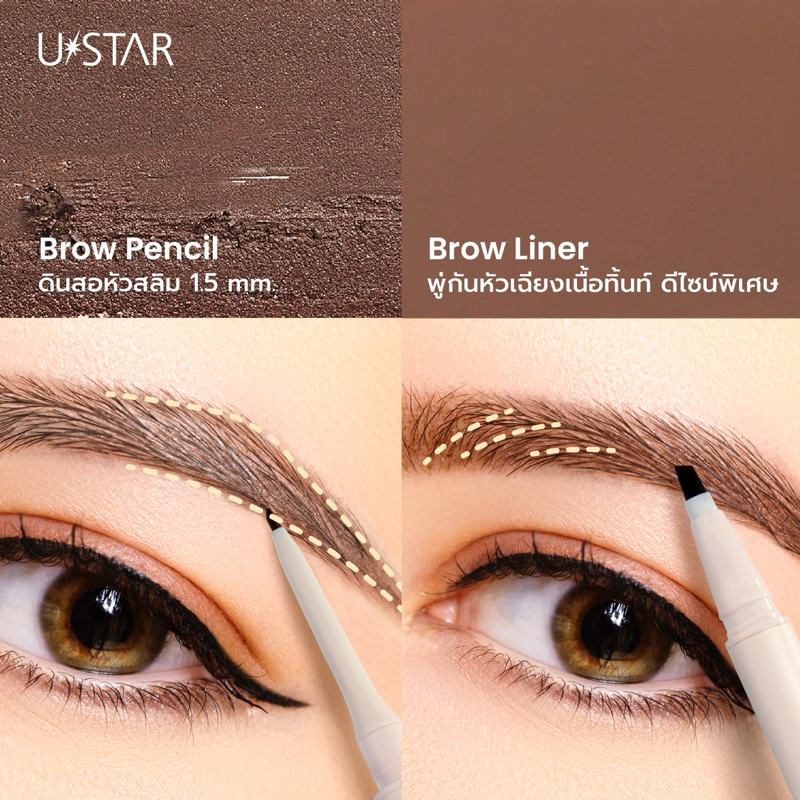 ?️ USTAR(ดินสอเขียนคิ้ว&อายไลเนอร์)หัวดินสอและพู่กัน 2 IN 1 SLIM BROW PENCIL & LINER#Natural Brown Exp.02.2027