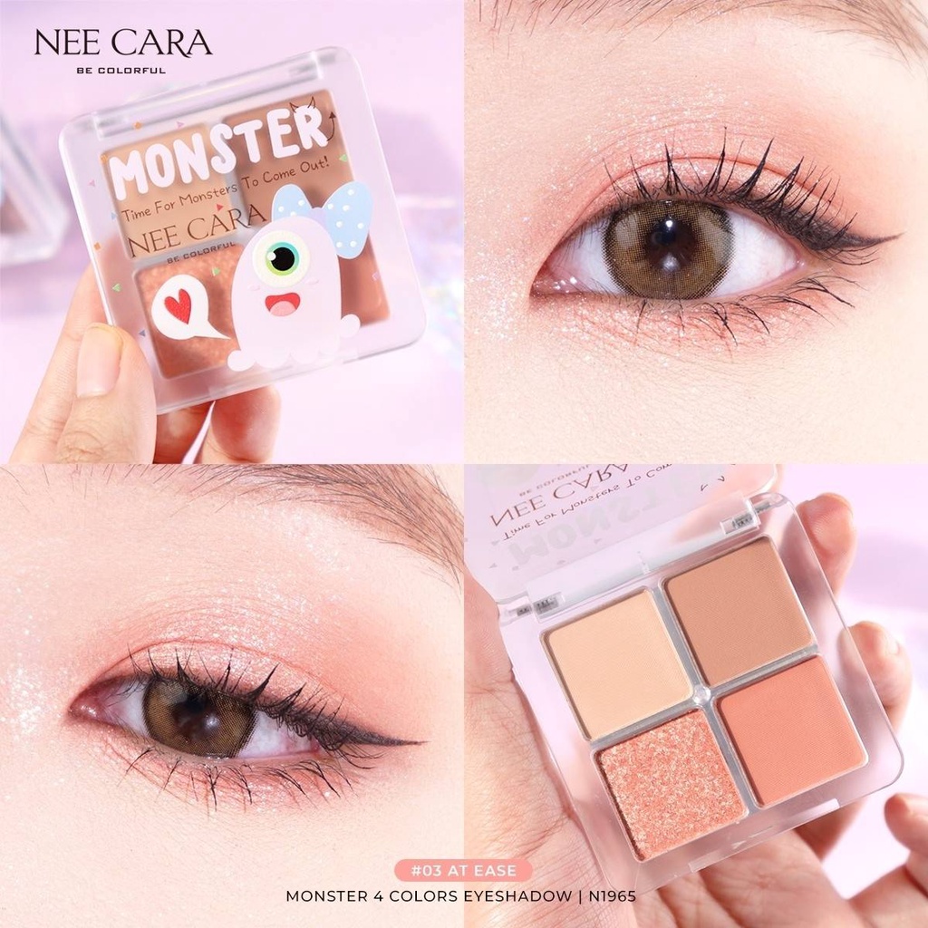 ถูก/แท้/มีไลฟ์ พาเลทท์ Nee Cara Monster 4 Color Eyeshadow อายแชโดว์ ทาตา แต่งตา ตาวิ้ง กลิตเตอร์ ชิมเมอร์ เกาหลี