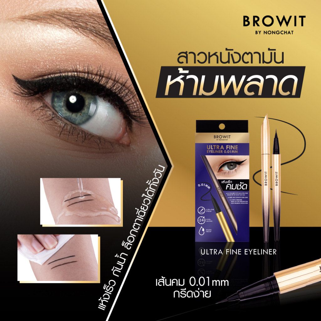 ถูก/แท้/มีไลฟ์ อายไลน์เนอร์ น้องฉัตร Browit Ultra Fine Eyeliner 0.01 mm เขียนขอบตา เขียนตา อายไลน์เนอร์กันน้ำ