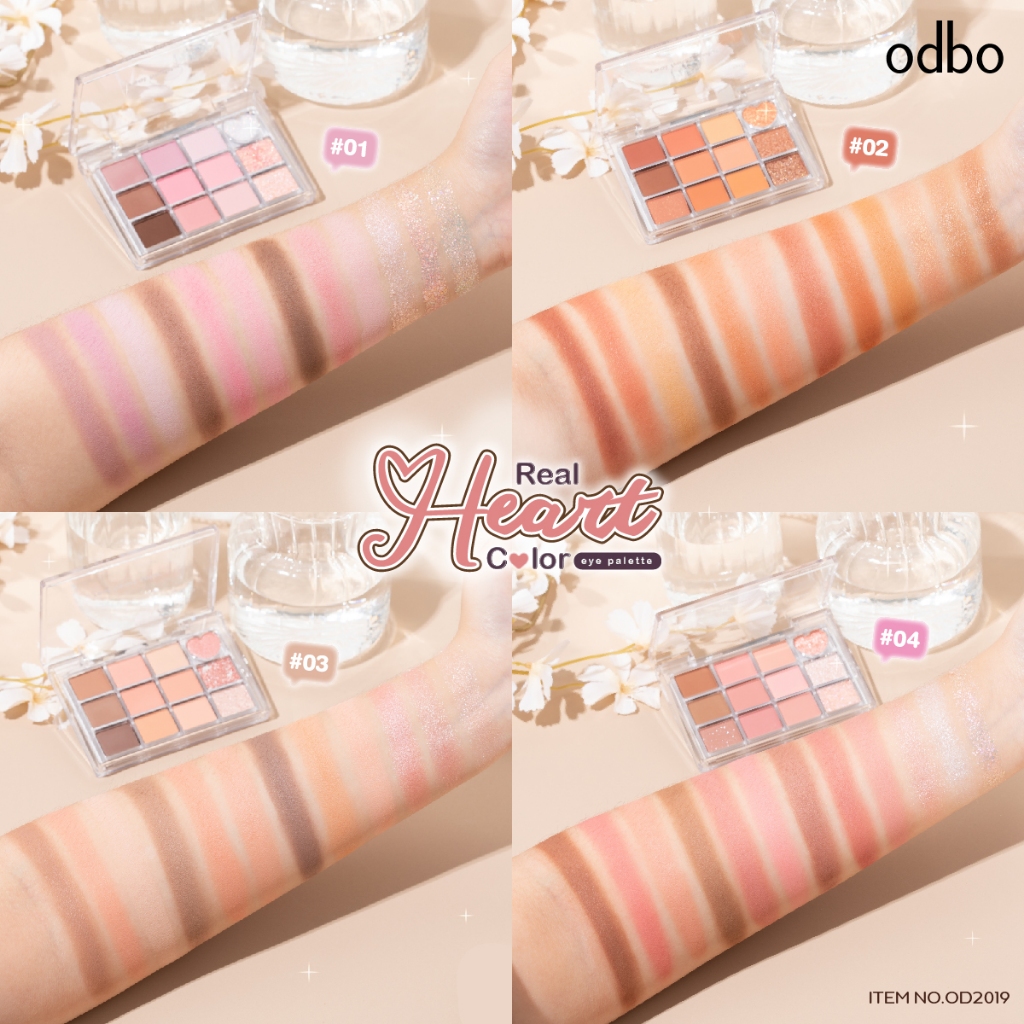 ถูก/แท้/มีไลฟ์ พาเลทท์ ODBO Real Heart Color Eye Palette พาเลท อายแชโดว์ เนื้อแมท ชิมเมอร์ ทาตา แต่งตา ตาวิ้ง สีชัด