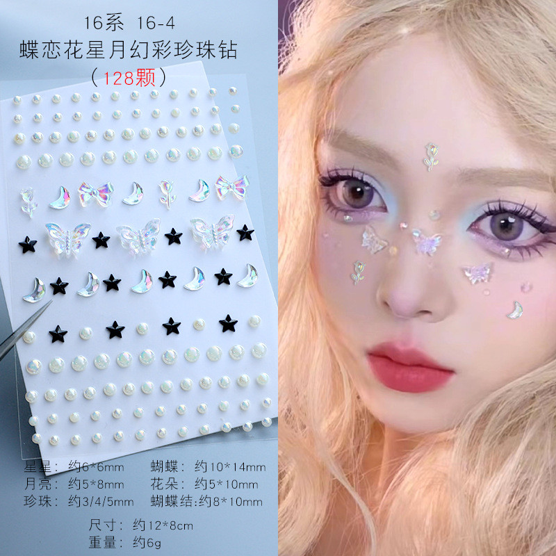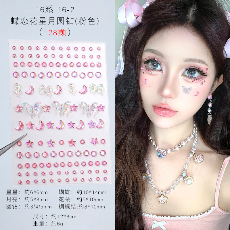 รูปแบบใหม่ตาแต่งหน้าสติกเกอร์เพชรเด็กแต่งหน้าสติกเกอร์ใบหน้าอุปกรณ์ใบหน้าผีเสื้อมุกเพชรสติกเกอร์เวที พลอยเทียม คิ้วสติกเกอ