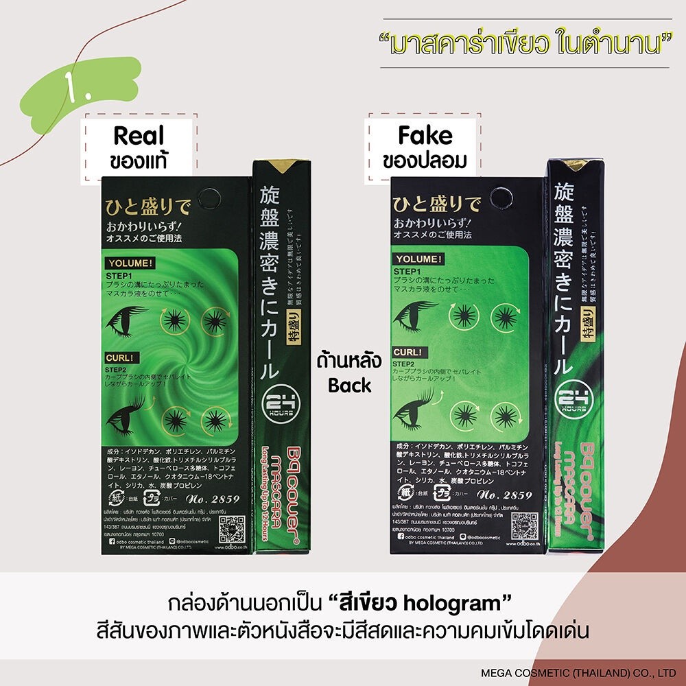 ร้านทางการ✅ มาสคาร่าเขียว อิงฟ้าใช้ [แท้จากบริษัท] Bq Cover Mascara งอน เด้ง Odbo BQ2859 | bq มีตัวเลือก