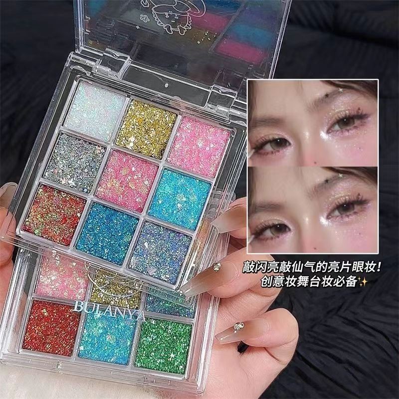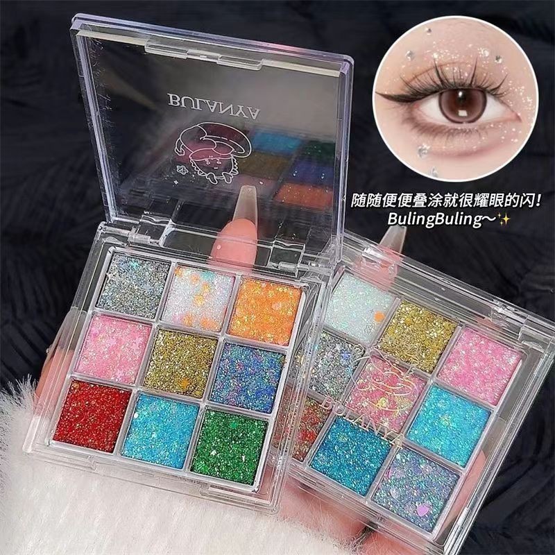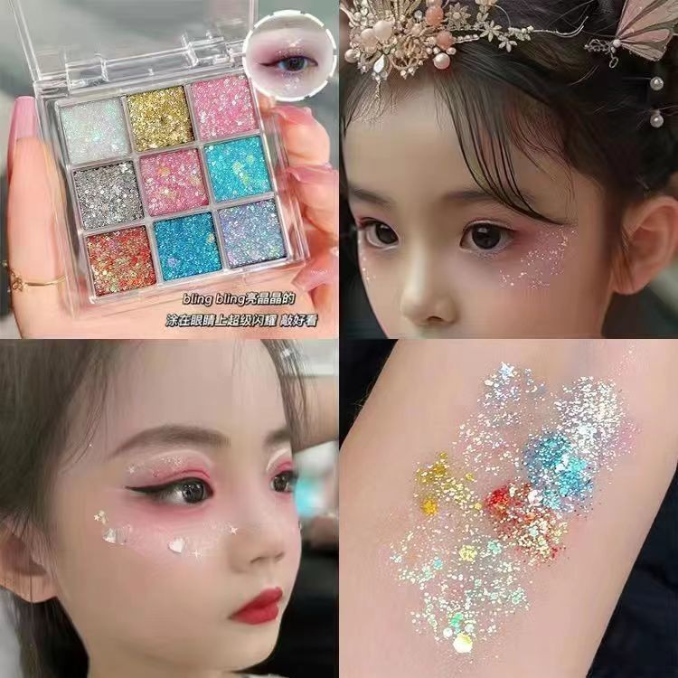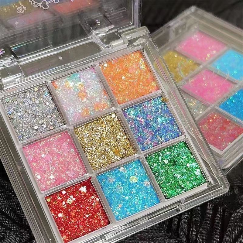 แต่งหน้าบนเวทีอายแชโดว์เก้าสีอายแชโดว์เลื่อมเจลเจลเจลน้ำสาวกลิตเตอร์แต่งหน้าตาแวววาว