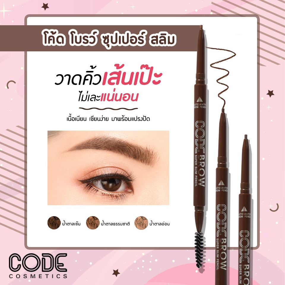 โค้ดโบรว์ ซุปเปอร์ สลิม เพนซิล ดินสอเขียนคิ้ว ดาร์กบราวน์/เนเชอรัล บราวน์/ไลท์บราว มีให้เลือกครบทุกสี