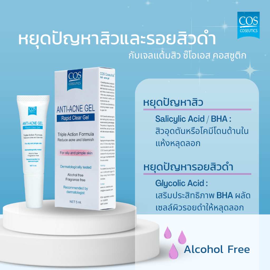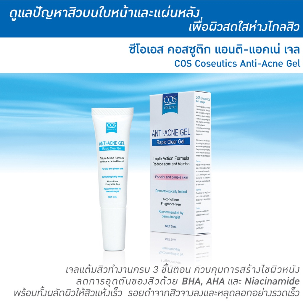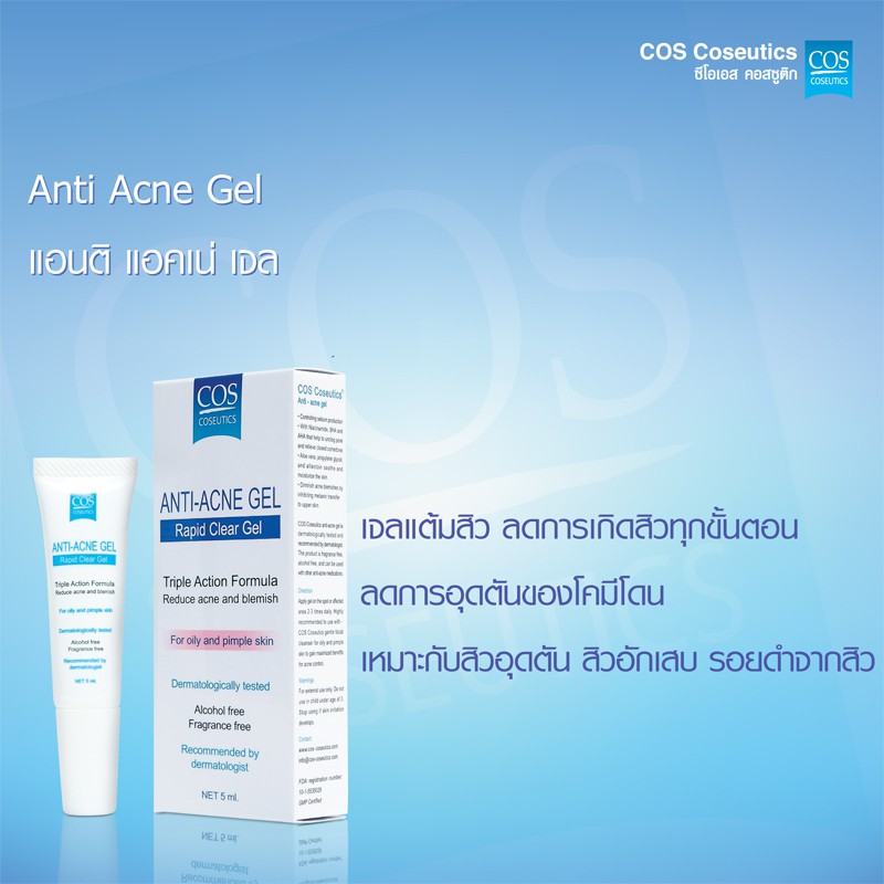เจลลดสิว ซีโอเอส คอสซูติก แอนติ แอคเน่ เจล COS Coseutics Anti Acne Gel 5 มล.