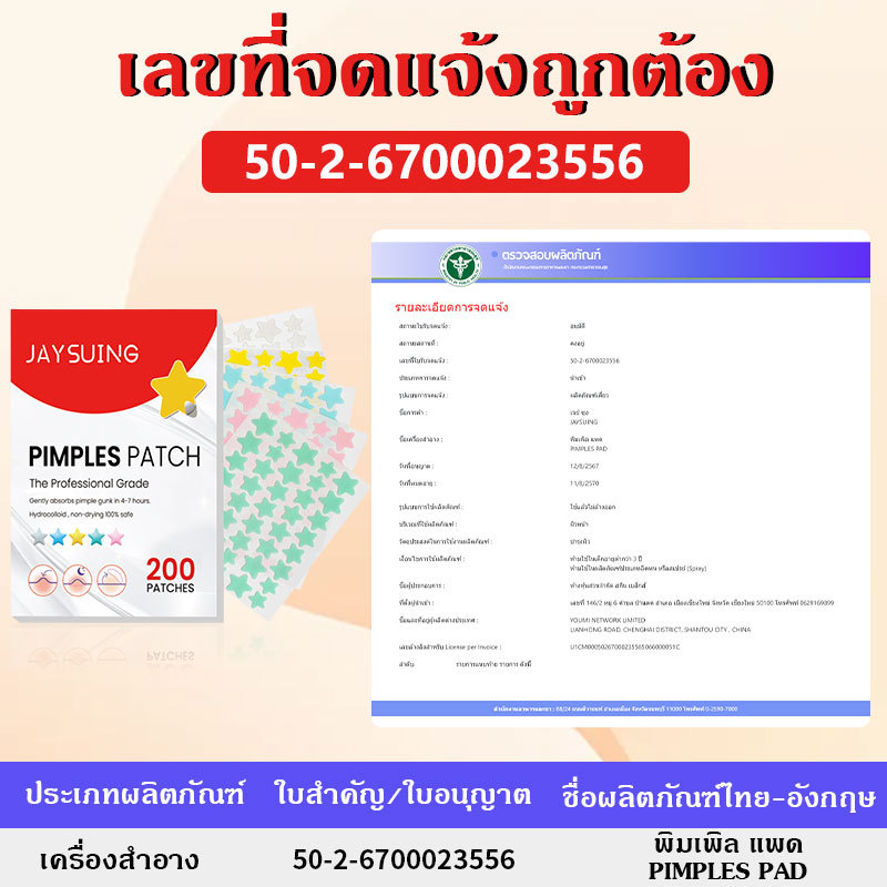 แท้ มีเลขทะเบียน【ซื้อ 1 แถม 1】ดาวสิวแพทช์ แผ่นแปะสิว ⭐รูปดาวน่ารัก สิ่งที่ต้องมีสำหรับคนเป็นสิว Skin Care