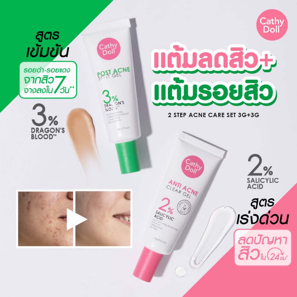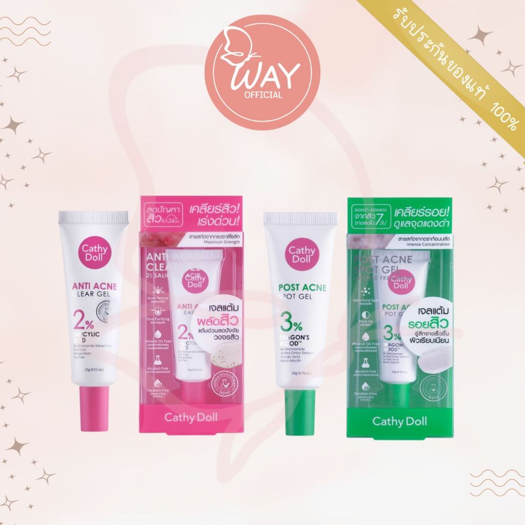 เคที่ดอลล์ แอนตี้ แอคเน่ เคลียร์ เจล 2% 15g/ โพสต์ แอคเน่ สปอตเจล 20g Cathy Doll Anti Acne 2% / Post Acne Spot Gel 20g