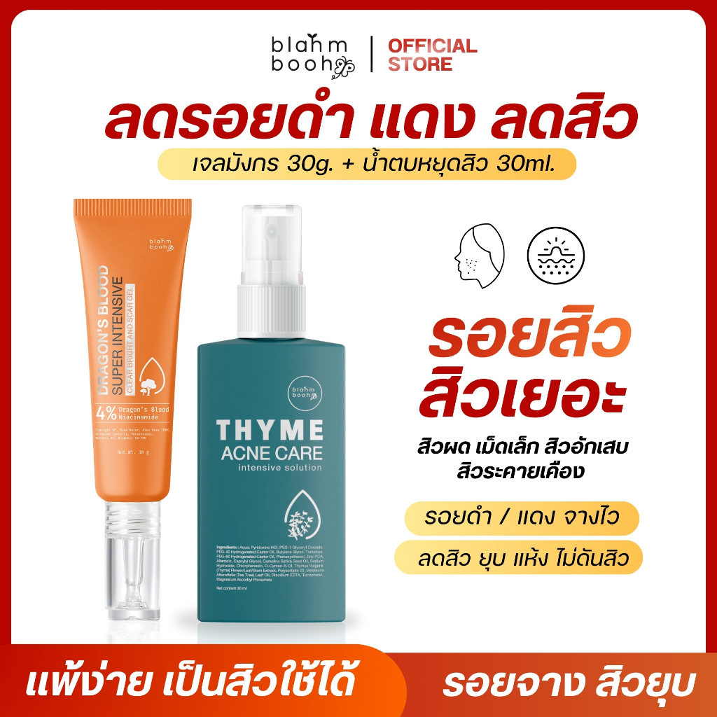 เจลมังกร + น้ำตบหยุดสิว : เหมาะกับผู้มีปัญหาเรื่องสิว สิวผด สิวอุดตัน สิวอักเสบ รอยสิว รอยดำ รอยแดง