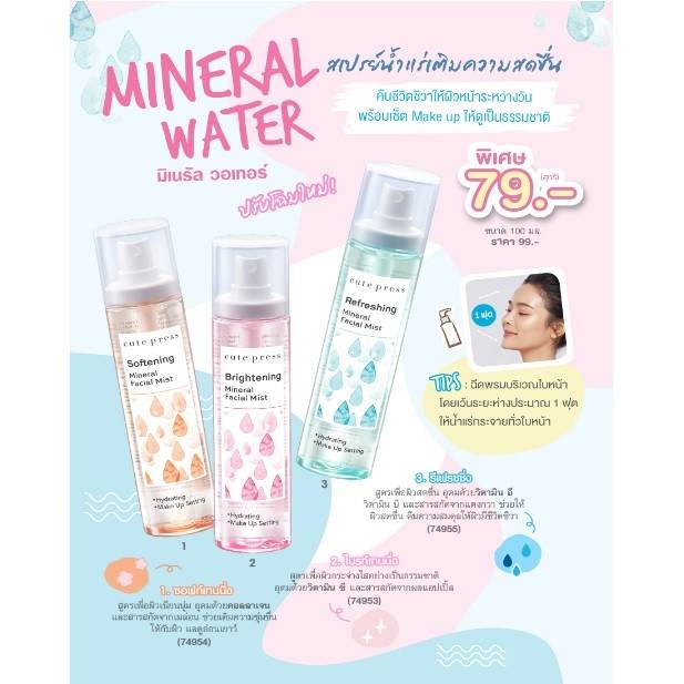 Cute Press น้ำแร่ สเปรย์ Mineral Facial Mist 100ml : cutepress คิวเพรส สเปรย์ น้ำแร่ x 1 ชิ้น beautybakery