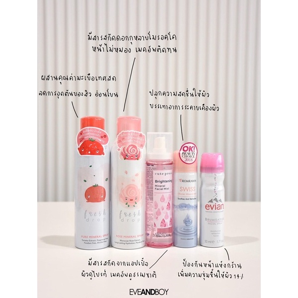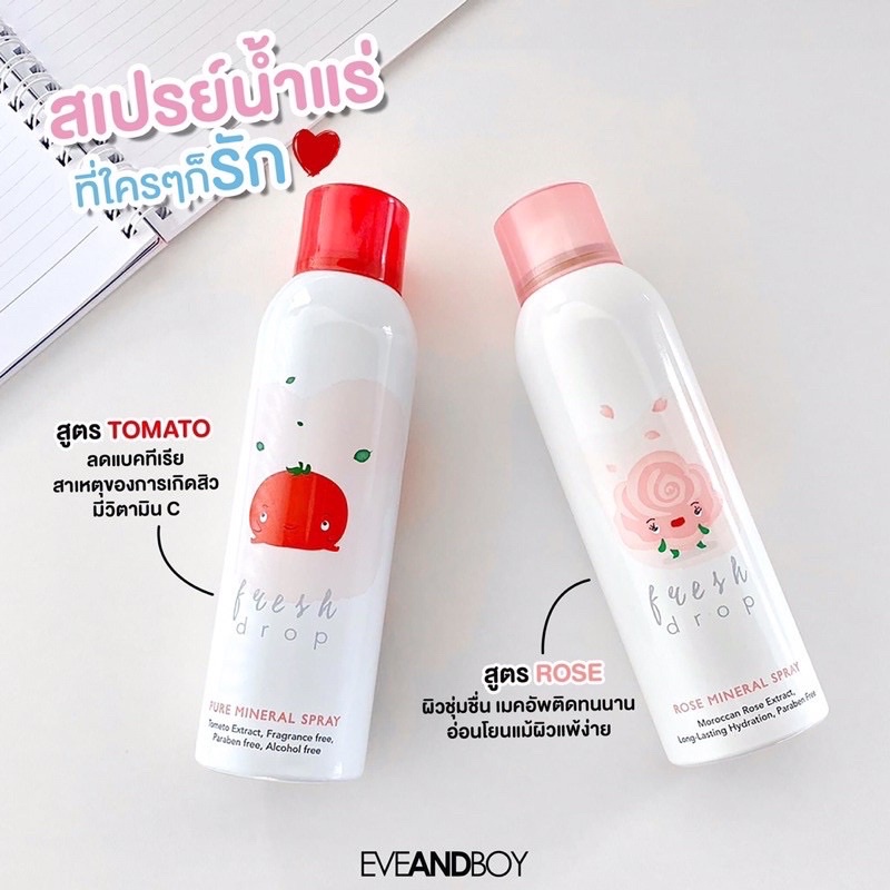 Fresh Drop PURE MINERAL SPRAY ผลิตภัณฑ์สเปรย์น้ำแร่บริสุทธิ์ สารสกัดจากมะเขือเทศสด และ กุหลาบโมรอคโค