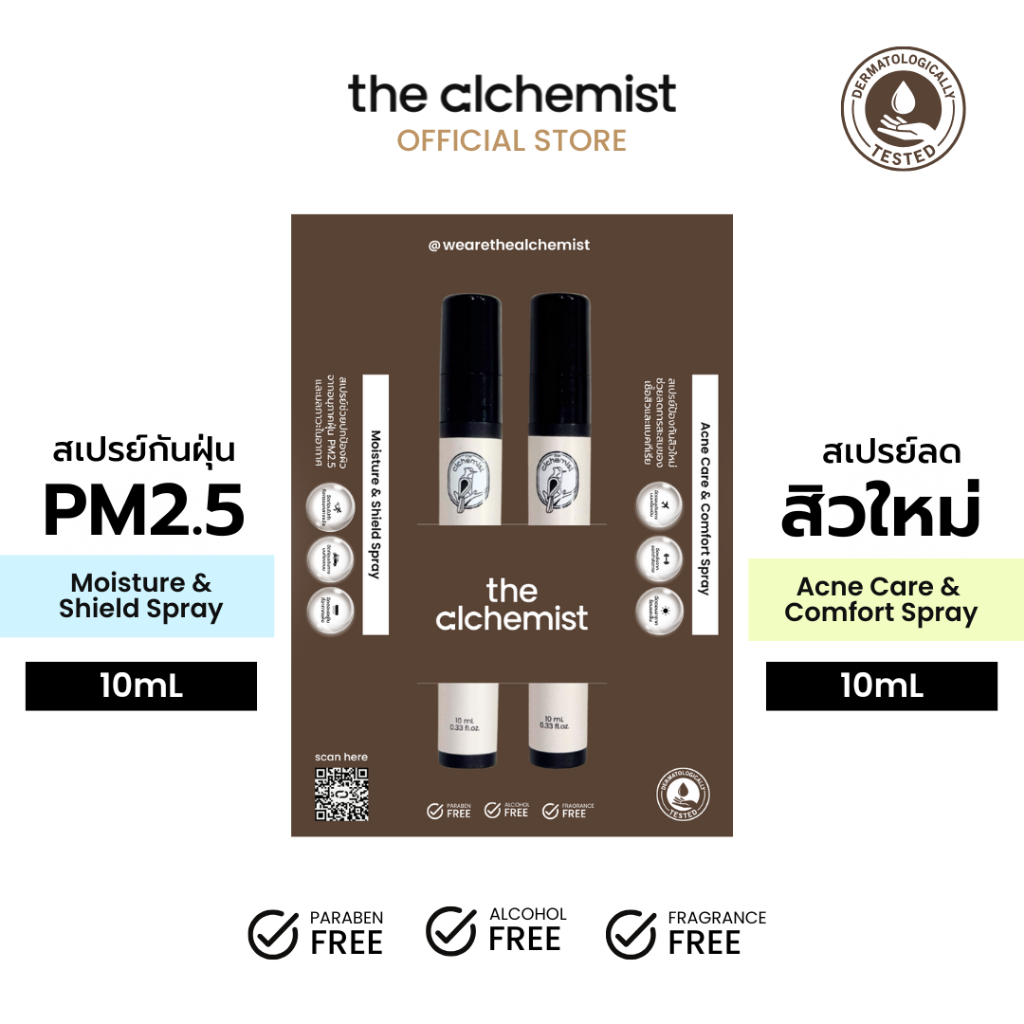 [แพ็กคู่ 10 มล. x 2] The Alchemist Pocket Size Duo Set เซทสเปรย์ป้องกันฝุ่น PM2.5 & สเปรย์ช่วยลดการเกิดสิวใหม่ ขนาด 10mL