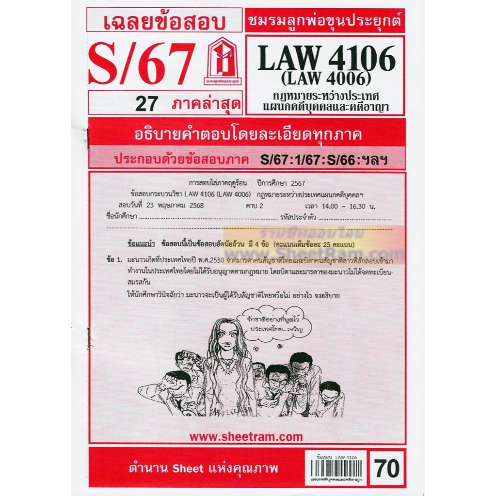 ชีทราม LAW4106 / LAW4006 / LA406 / LW405 กฏหมายระหว่างประเทศแผนกคดีบุคคลและคดีอาญา