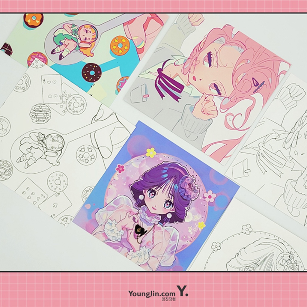 [ สมุดระบายสีเกาหลี ] Retro x Kitch x PinkPop Lovely Girl สมุดระบายสีสาวน่ารัก Vivinos