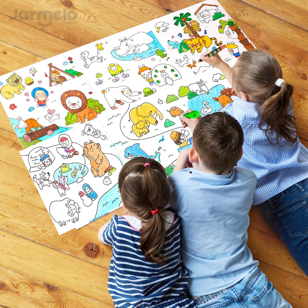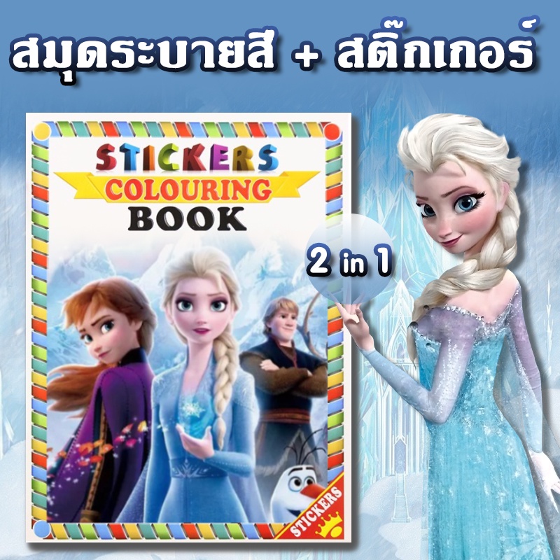 ?หนังสือระบายสี +พร้อมสติ๊กเกอร์ สมุดลายการ์ตูน ขนาด A4 ?