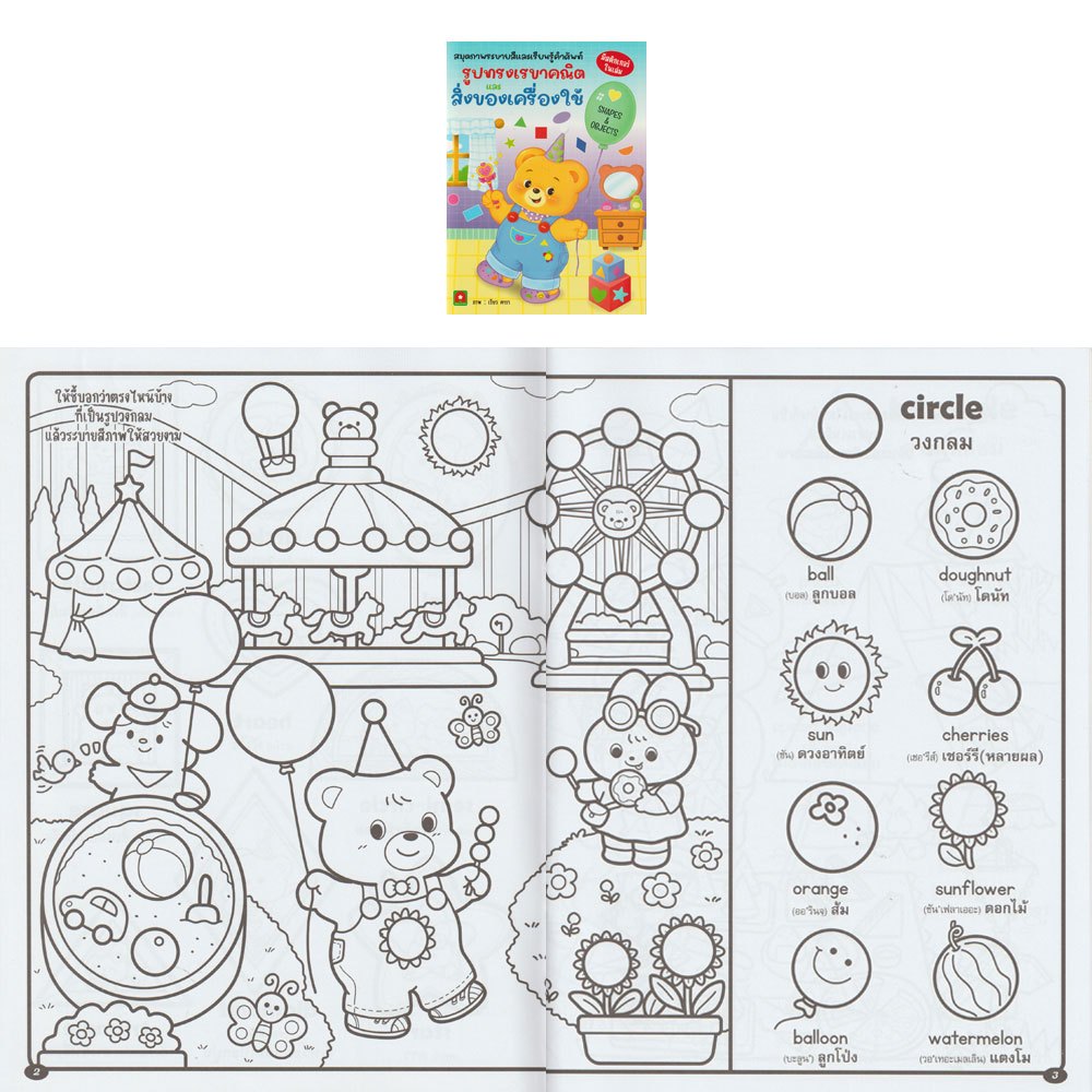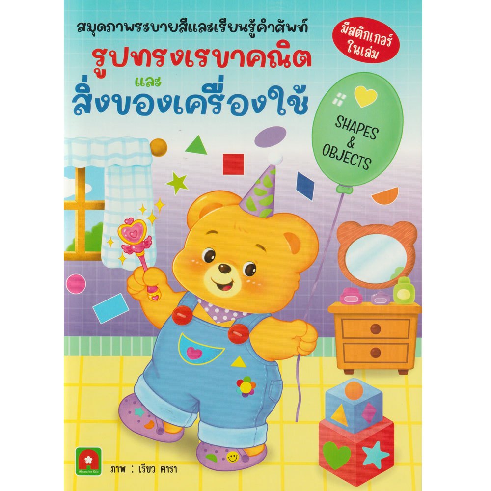 Aksara for kids หนังสือ สมุดภาพ ระบายสี เรียนรู้คำศัพท์ รูปทรงเรขาคณิต และ สิ่งของเครื่องใช้