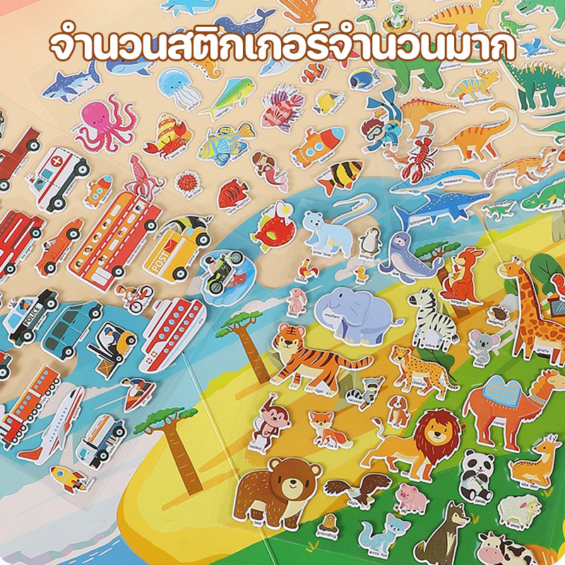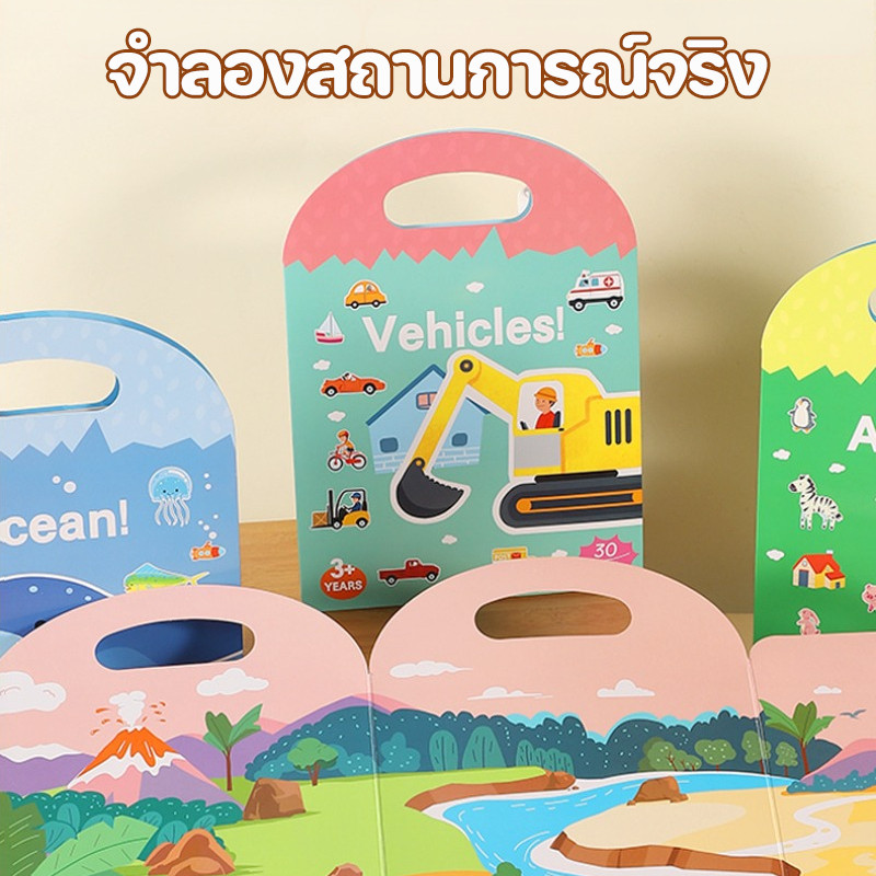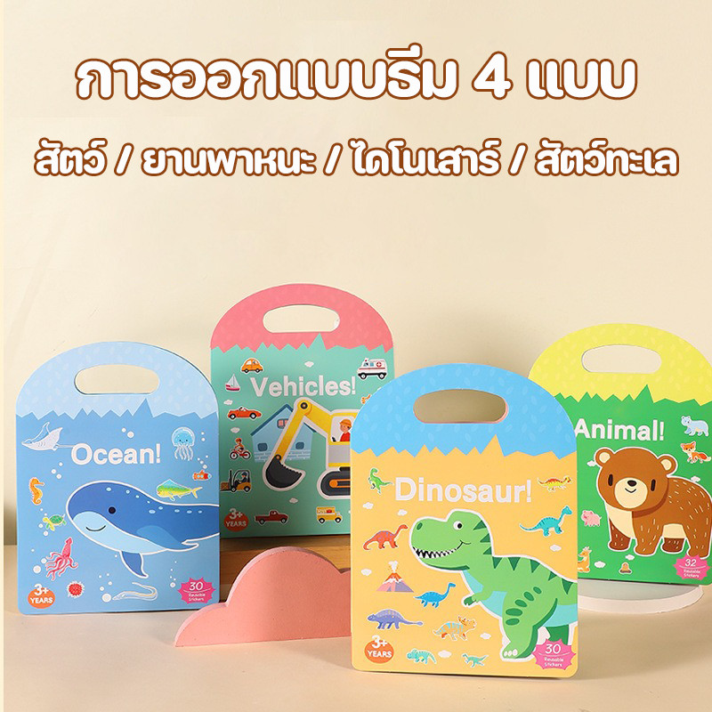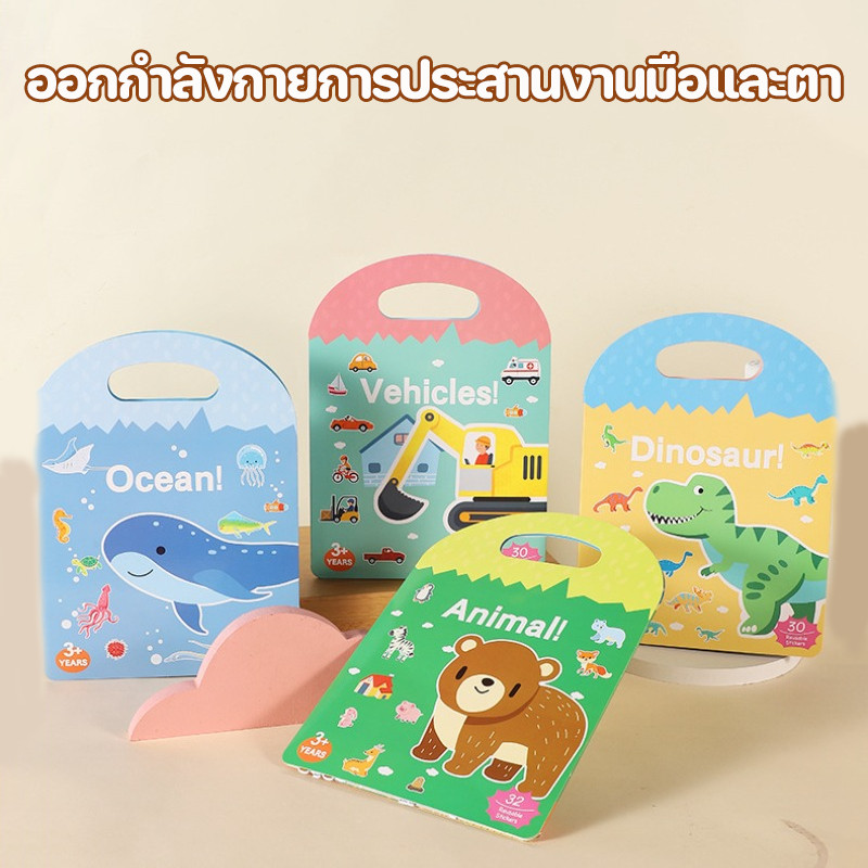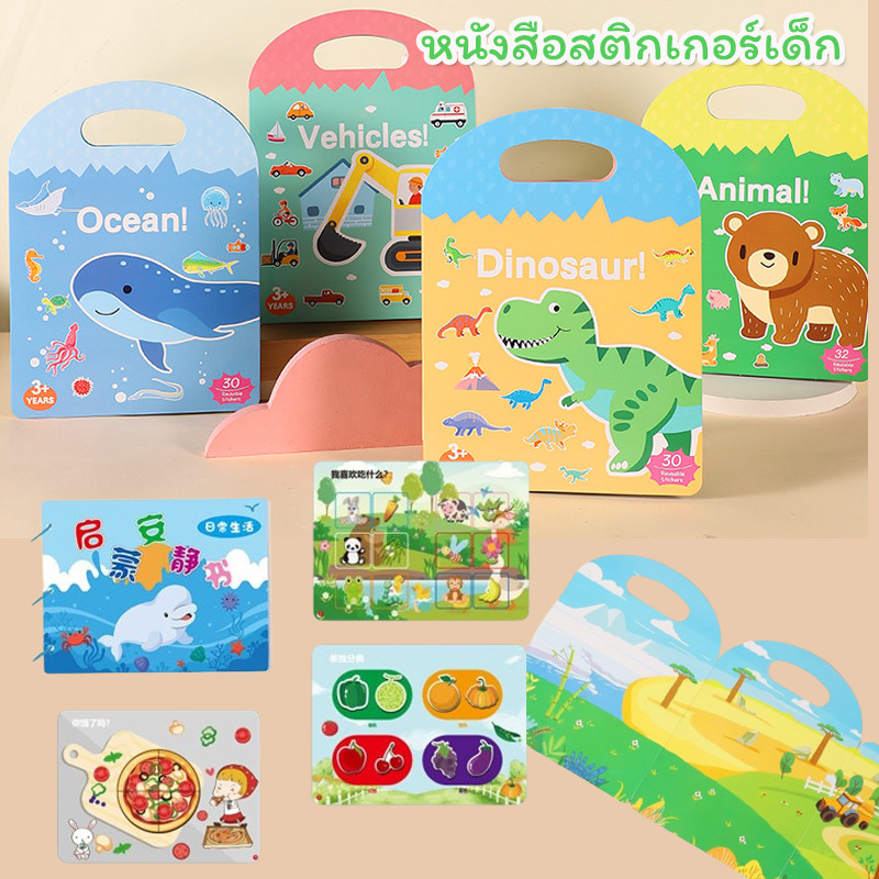 สมุดสติ๊กเกอร์เด็ก สติ๊กเกอร์ติดซ้ำได้ หนังสือเงียบ ของเล่นเสริมพัฒนาการ การฝึกสมอง