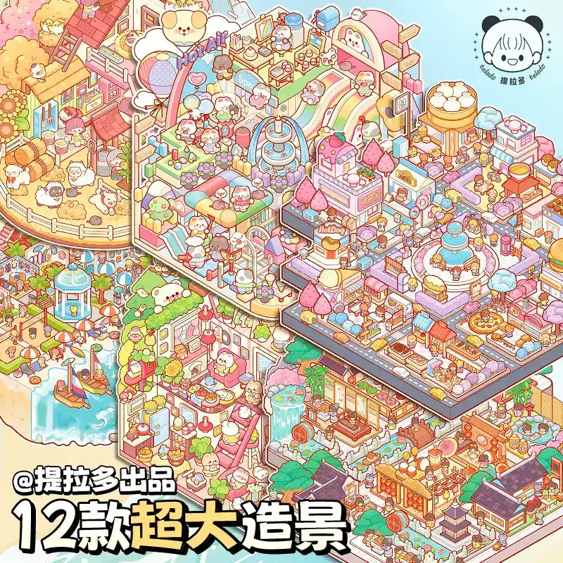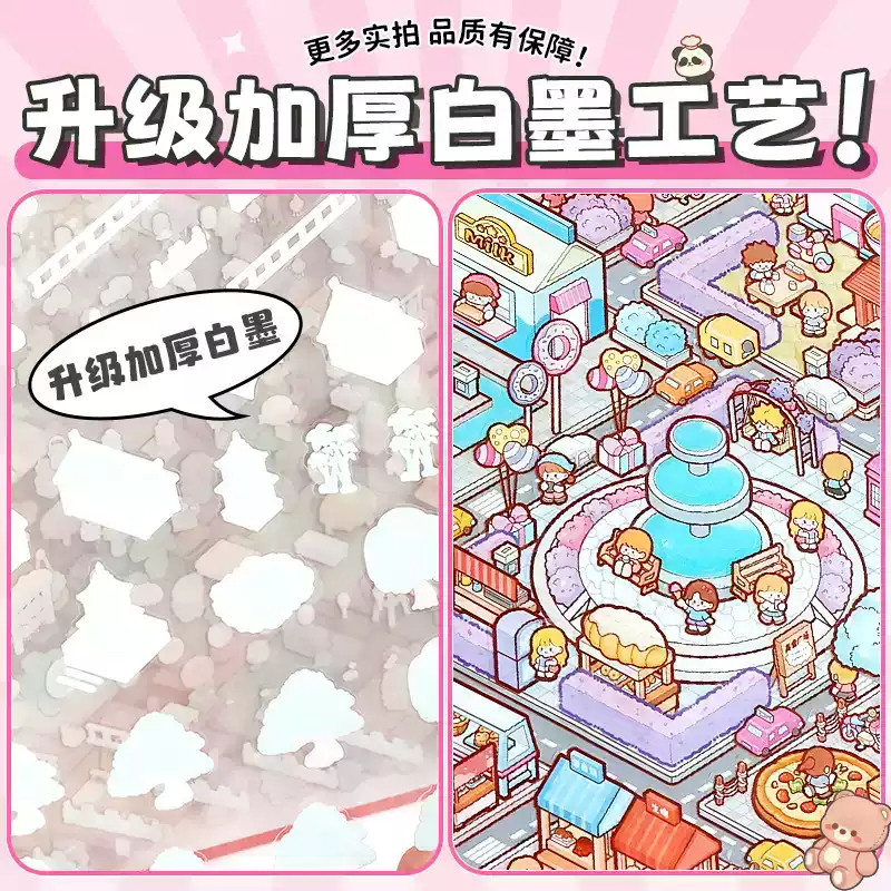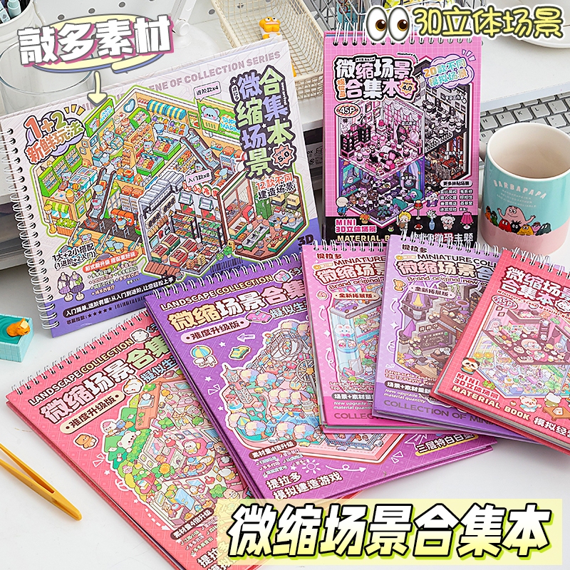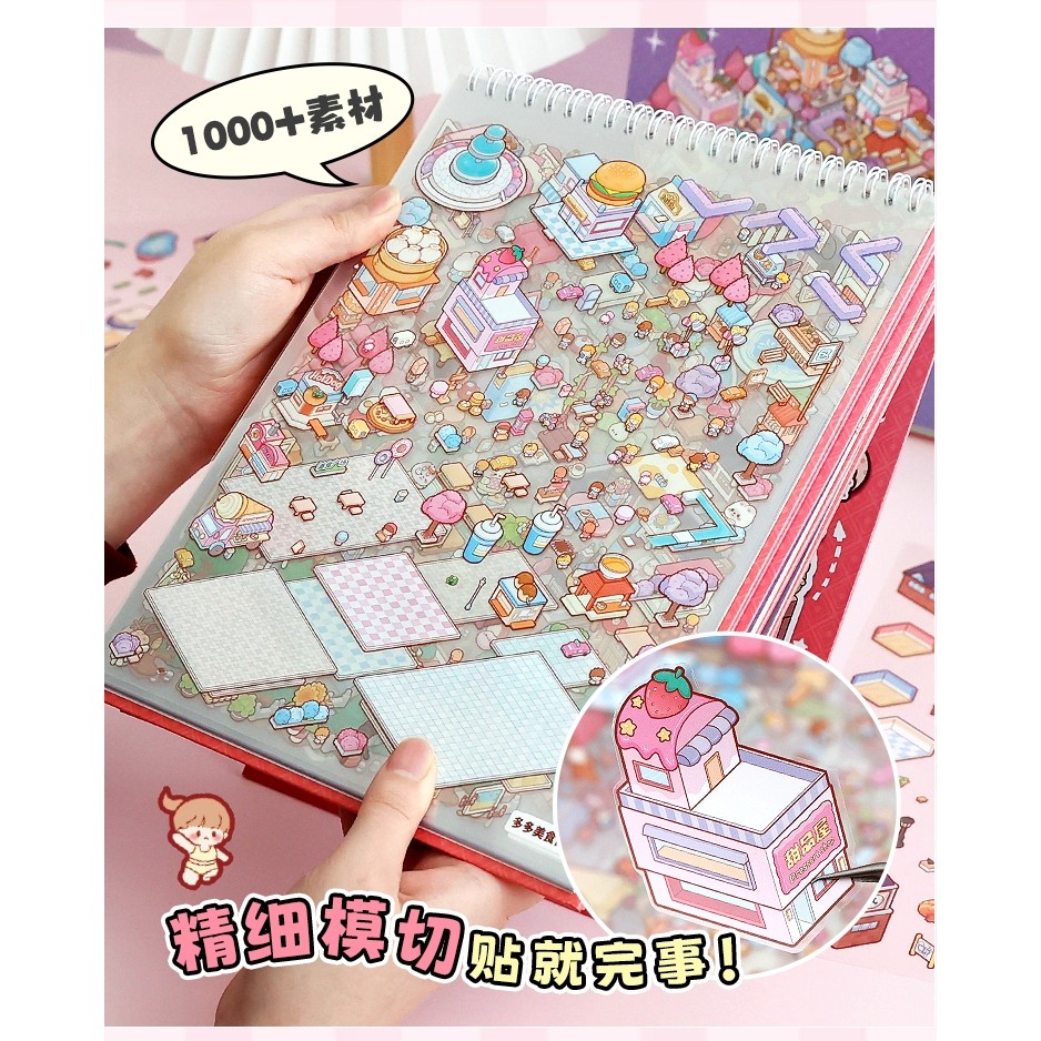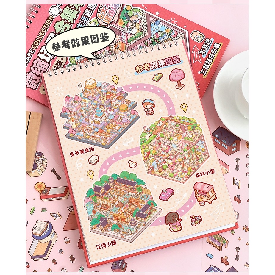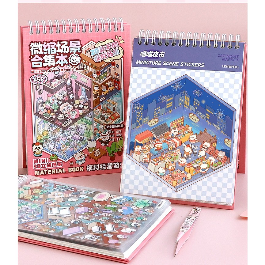พร้้อมส่ง?3D สติกเกอร์ฉากชุด DIY การ์ตูนภูมิทัศน์สติกเกอร์หนังสือ,สติกเกอร์เครื่องเขียนฟรีผสม 20in1