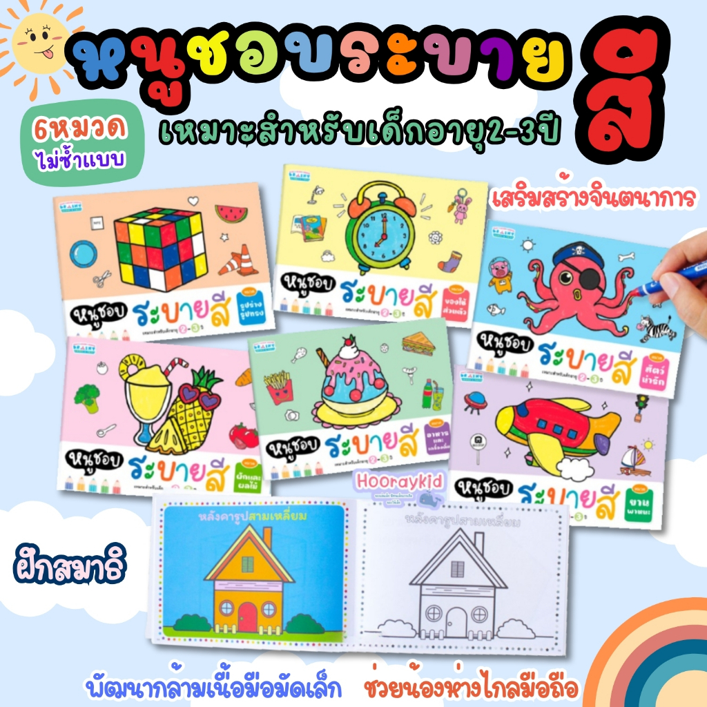 สมุดระบายสีเด็ก– ชุดใหม่— 6หมวด ชุดใหม่ ชุดหนูชอบระบายสี หนังสือระบายสี ระบายได้จุใจ ฝึกศิลปะเด็ก (2-4 ขวบขึ้นไป)