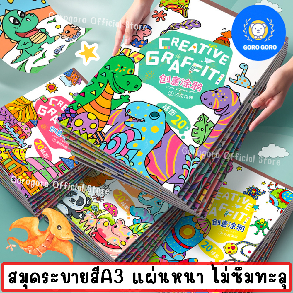 สมุดระบายสี [*แถมฟรี กระดาษสเก็ตช์ 10แผ่น] ขนาดA3 ( รุ่นเพิ่มความหนา 100g. ไม่ซึมทะลุ) ส่งไวมาก