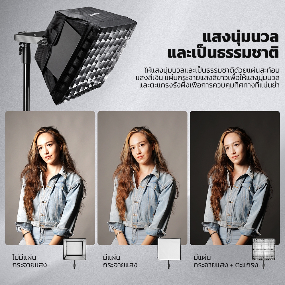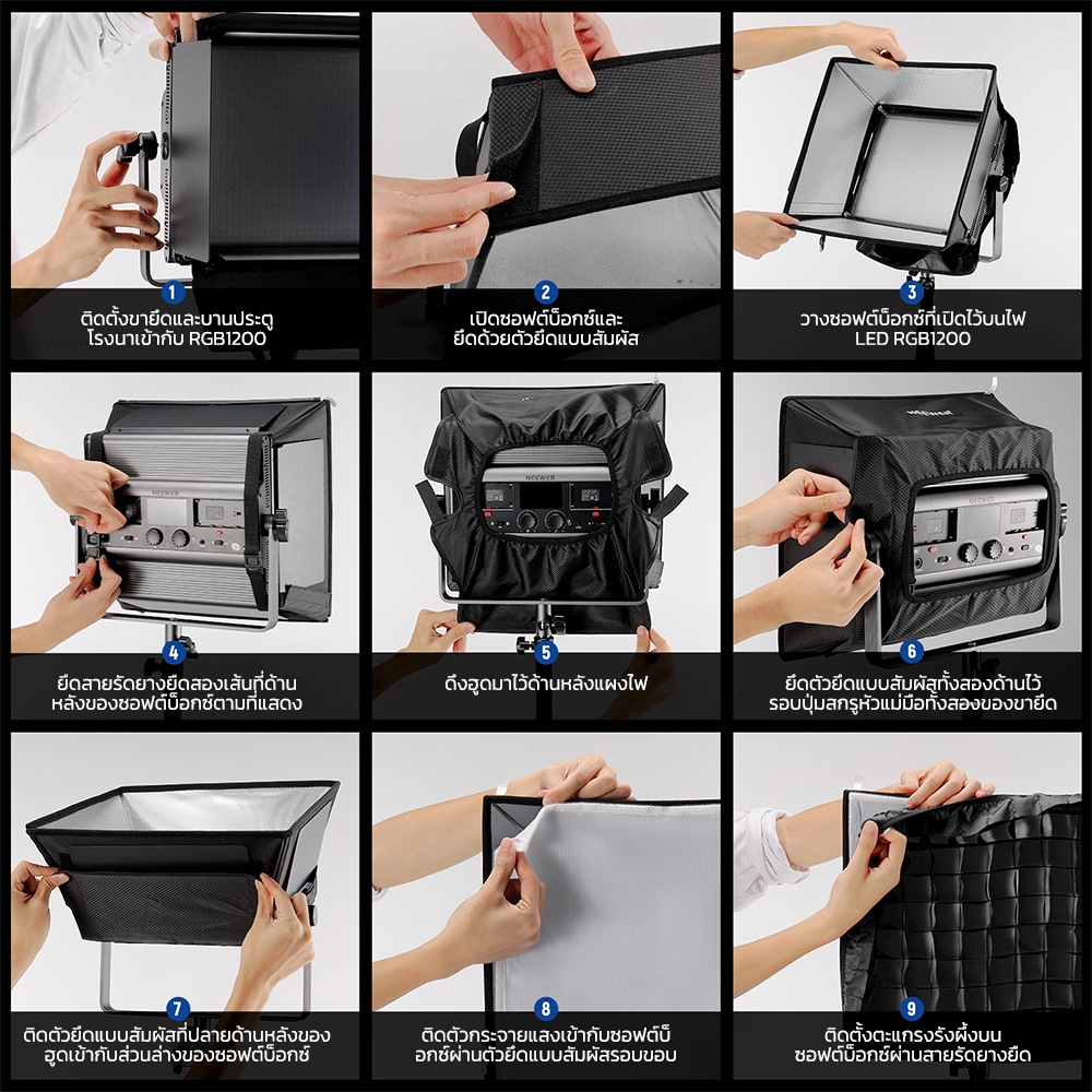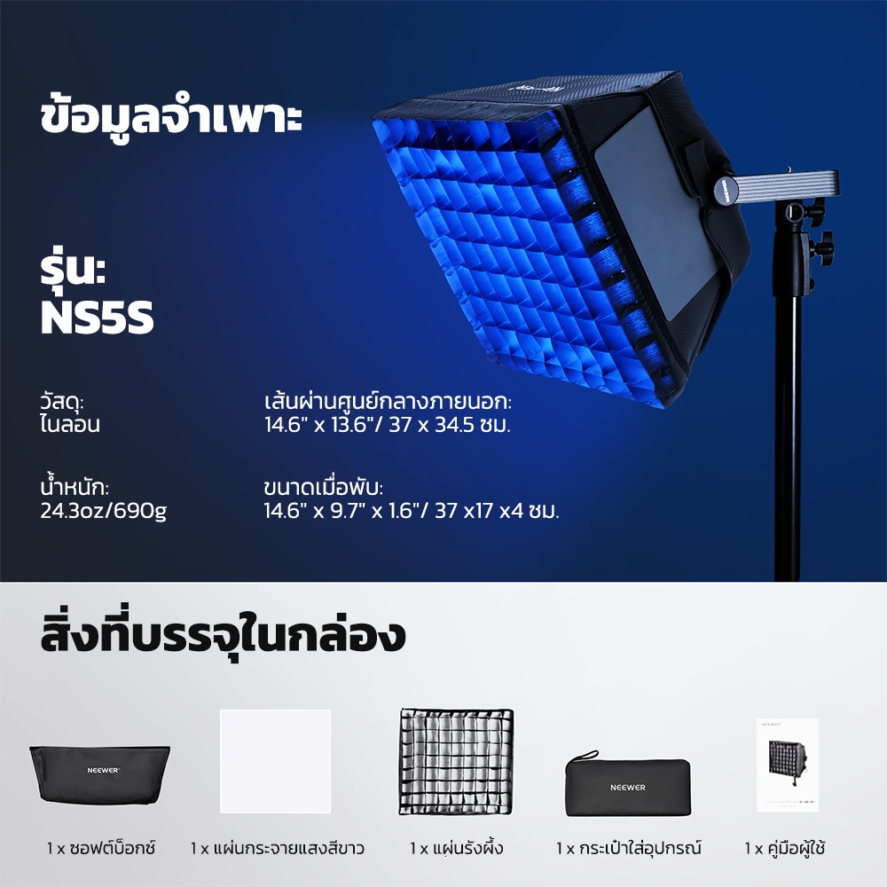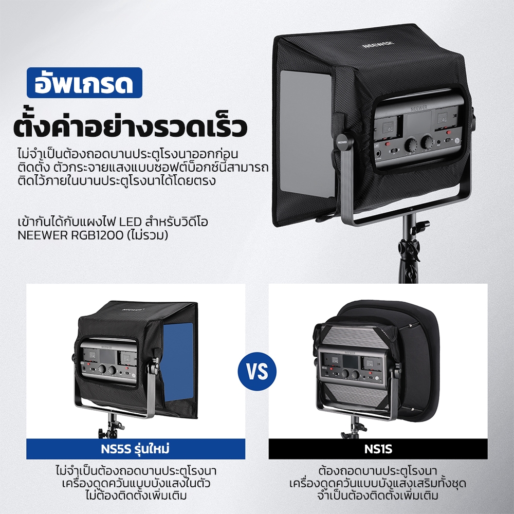 Neewer 14.6″x13.6″ Softbox Diffuser แผงไฟ LED RGB1200 แบบพับได้, NS5S