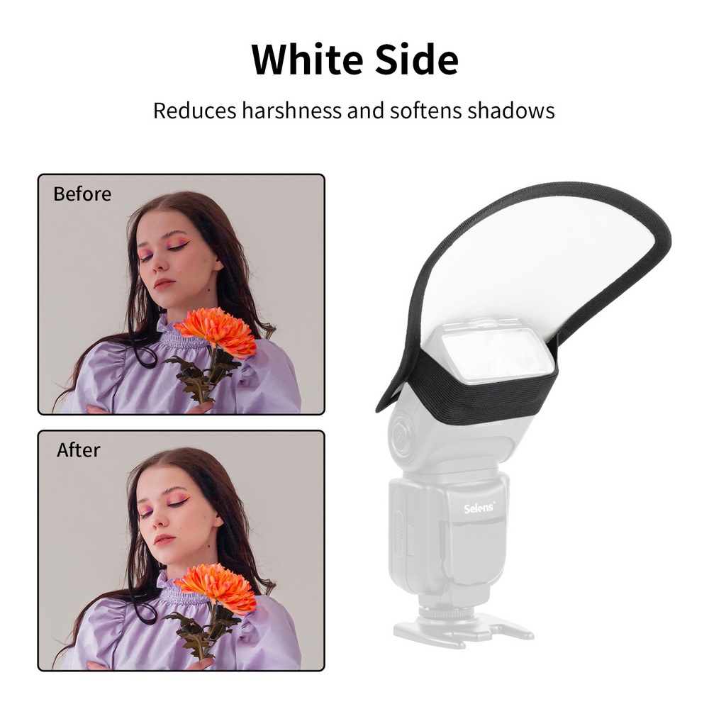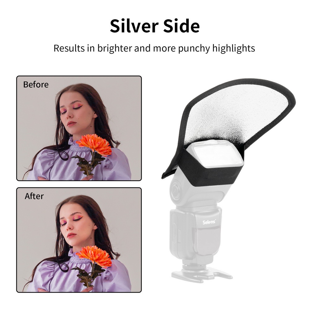 Selens Universal Speedlight Flash Diffuser Silver/White Camera Flash Reflector สําหรับ Sony Canon DSLR