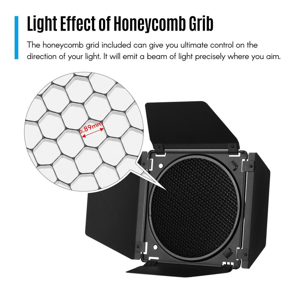 Godox BD-04 บานดอร์ พร้อมรังผึ้ง แผ่นกรองเจล 4 สี แบบเปลี่ยน สําหรับโคมไฟสตูดิโอ 7 นิ้ว BanDoor