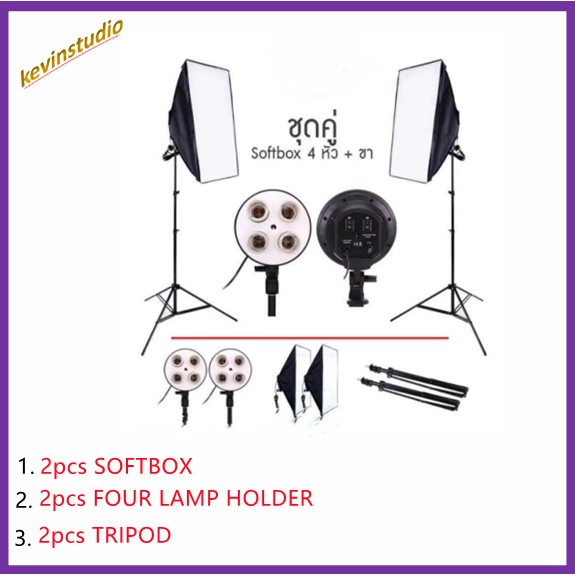 ชุดไฟสตูดิโอ SOFTBOX แบบ 4 ขั้ว E27 ขนาด50×70 CM. ขาตั้งไฟสูง 2.1 เมตร เซ็คคู่ 2 ตัว