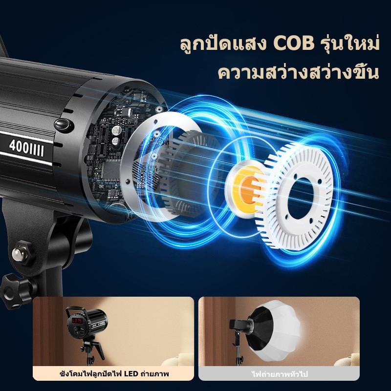 ตัวเรือนเป็นโลหะ ไฟไลฟ์สด 500W ลูกปัดโคมไฟ COB ความสว่างสูง LED ไฟถ่ายรูป ไฟสตูดิโอ with 90cm Softbox & 2.8m Stand
