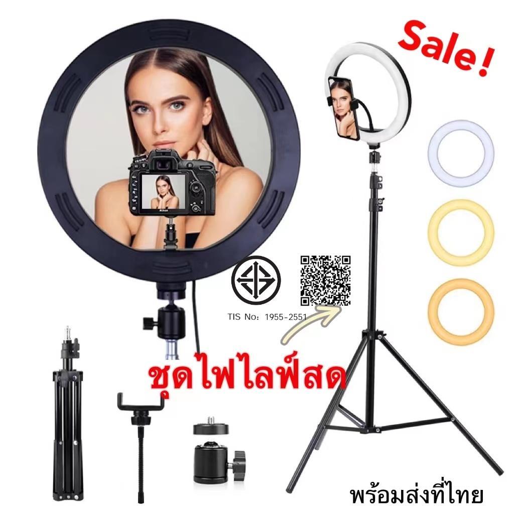 ชุดไฟไลฟ์สด ไฟLed พร้อมขาตั้ง2.1เมตร ไฟไลฟ์สด26-30CM ปรับได้3สี เปลี่ยนได้10ระดับ ไฟมีตัวจับมือถือในตัว