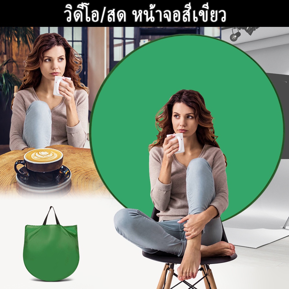 หน้าจอพื้นหลังการถ่ายภาพฉากหลังสีเขียวสตูดิโอถ่ายวิดีโอแบบพกพา ฉากเขียว กรีนสกรีน OBS Green Screen อุปกรณ์ถ่ายภาพ