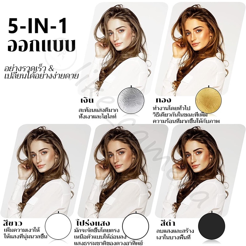 รีเฟล็กซ์ (Reflector) แผ่นสะท้อนแสง 5 in 1 พร้อมซองใส่ พับได้ แบบพกพา 60cm/80cm/110cm