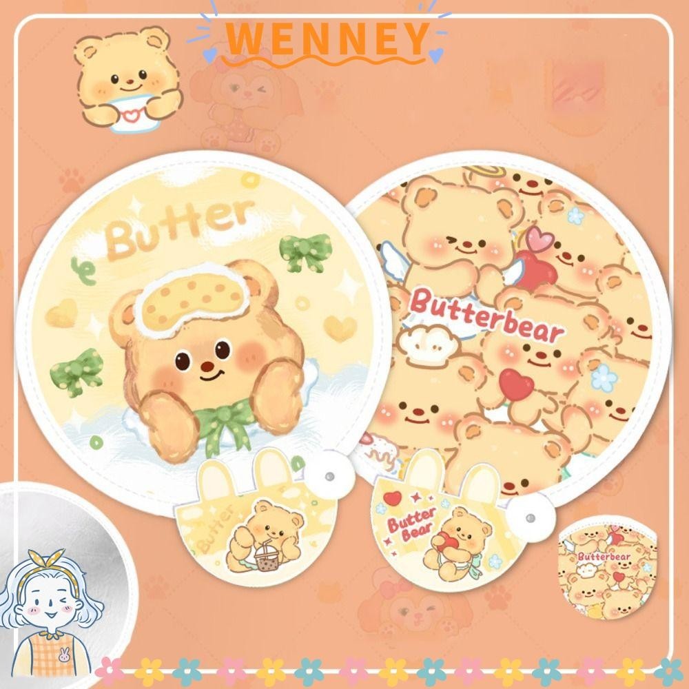 พัดลมสะท้อนแสง วันเนย์ พัดลมพับได้ลายการ์ตูนหมีเนยพัดลมทรงกลมเรียบง่ายแบบพกพาที่สร้างสรรค์