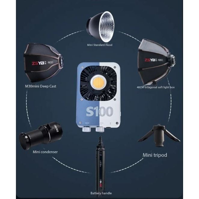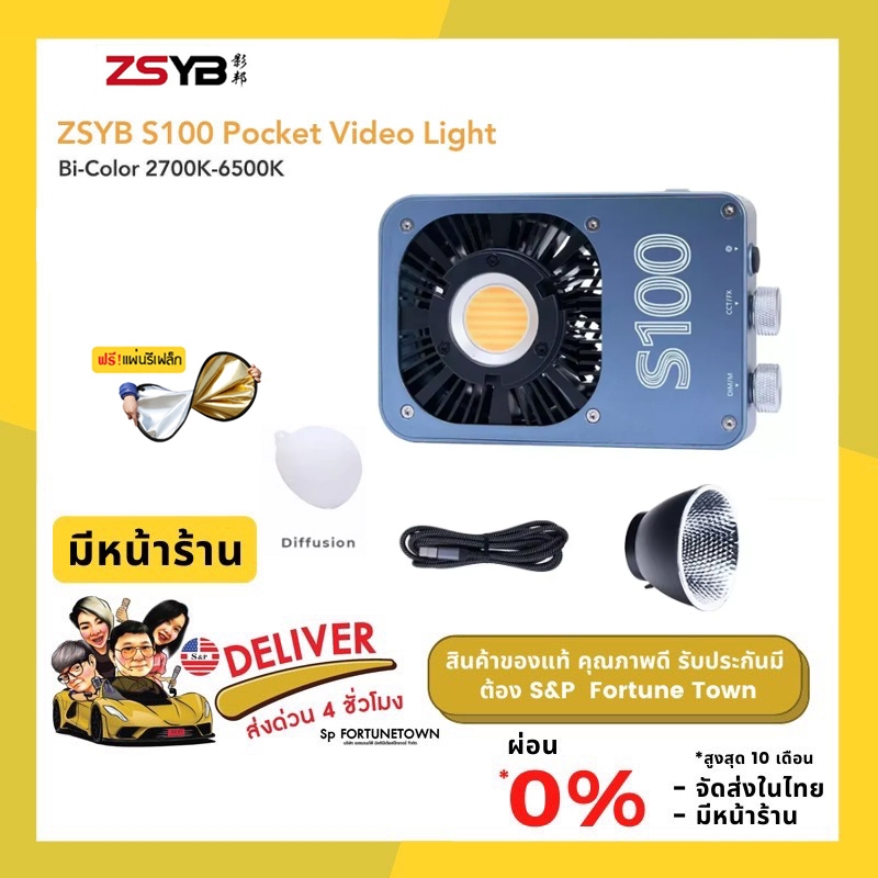 ส่งด่วน 4ชั่วโมง ZSYB S100 ไฟวิดีโอ พกพา 100W ปรับสี 2700-6500k Pocket COB Light ไฟ LED