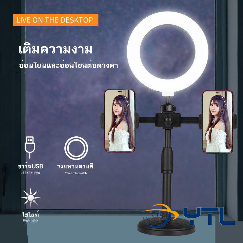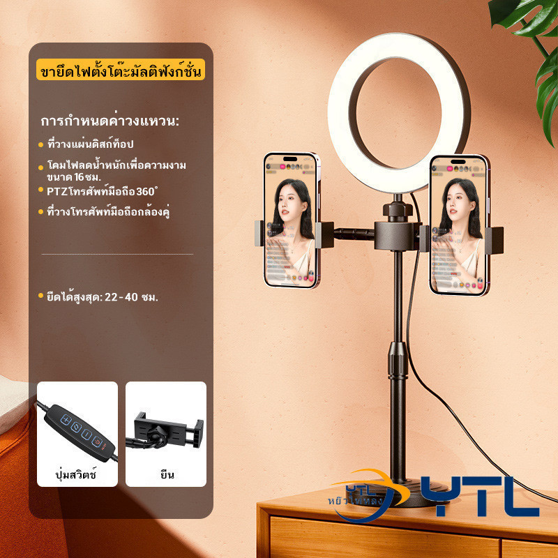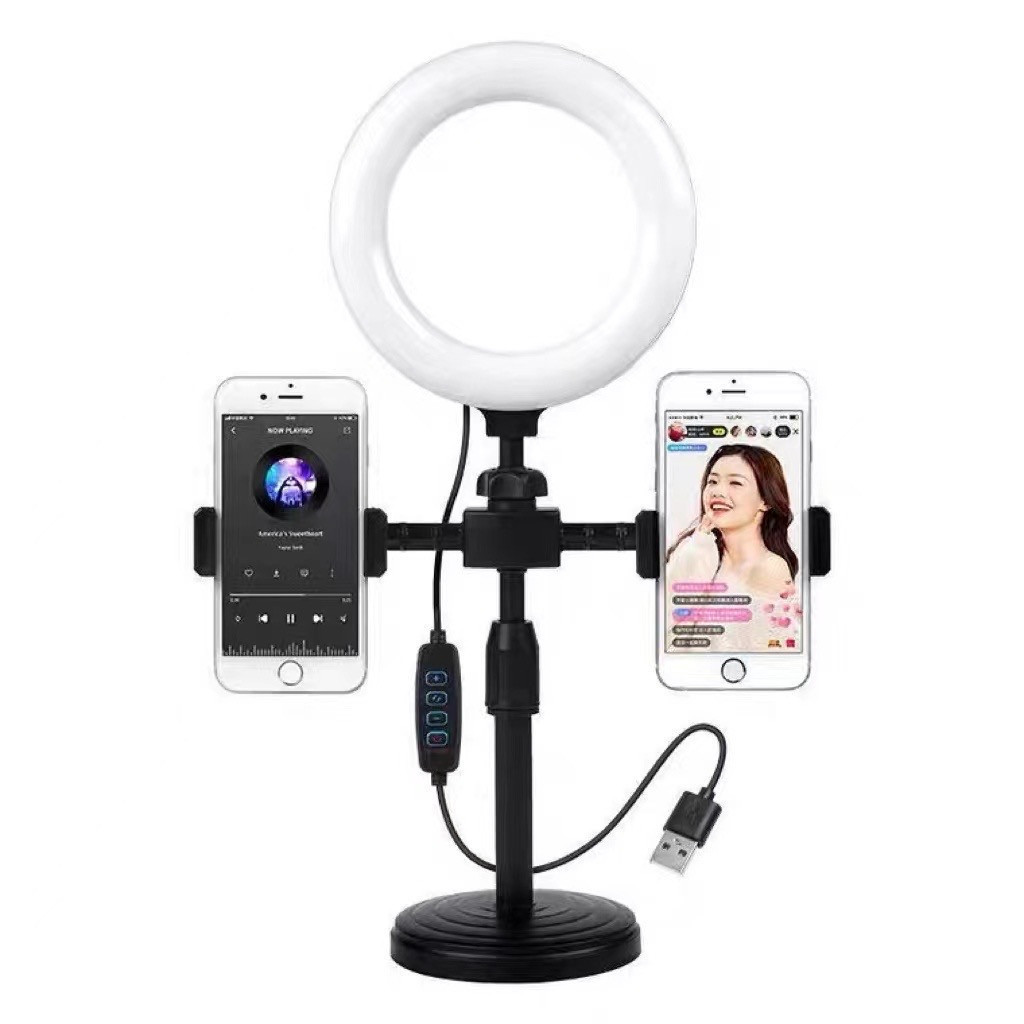 ไฟวงแหวนLED ไฟวงแหวน ไฟ16CM ไฟไลฟ์สด +พร้อมขาตั้ง +2ที่จับมือถือ มัลติฟังก์ชั่น ปรับมุมและความสูงได้